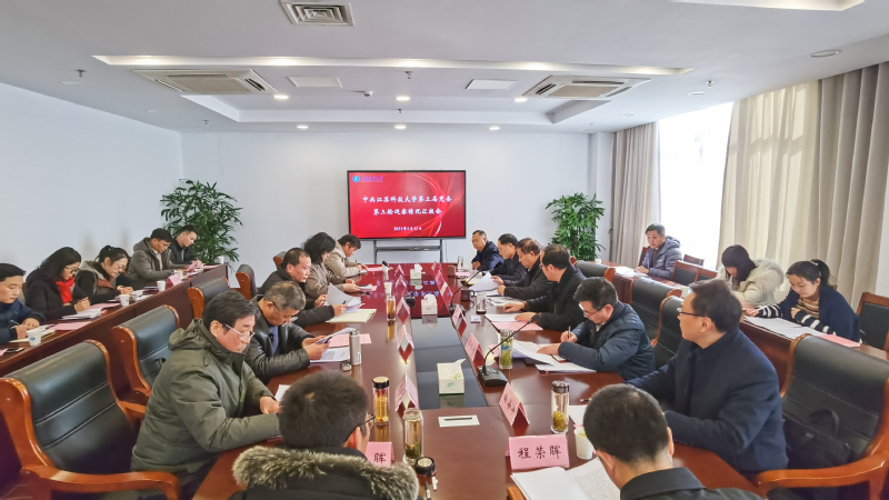1月12日下午,学校召开党委第三轮巡察工作情况汇报会,汇报会由校党委副书记、巡察工作领导小组副组长许俊华主持。校党委巡察工作领导小组全体成员、第三轮巡察各巡察组组长、副组长、报告撰写员、联络员和巡察办相关同志参加了会议。