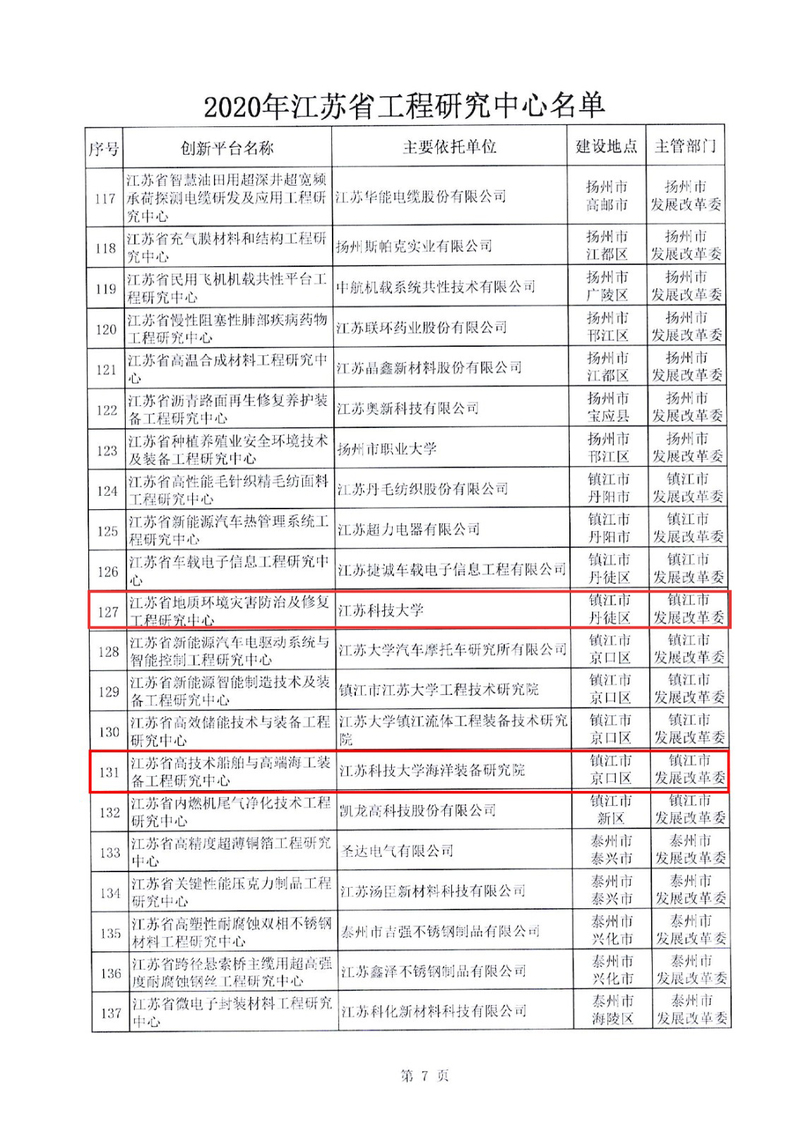 近日,江苏省发展和改革委员会印发了《关于同意建设2020年江苏省工程研究中心的通知》,球盟会qmh网站土木工程与建筑学院岩土工程团队申报的“江苏省地质环境灾害防治及修复工程研究中心”、海洋装备研究院申报的“江苏省高技术船舶与高端海工装备工程研究中心”获批立项建设。