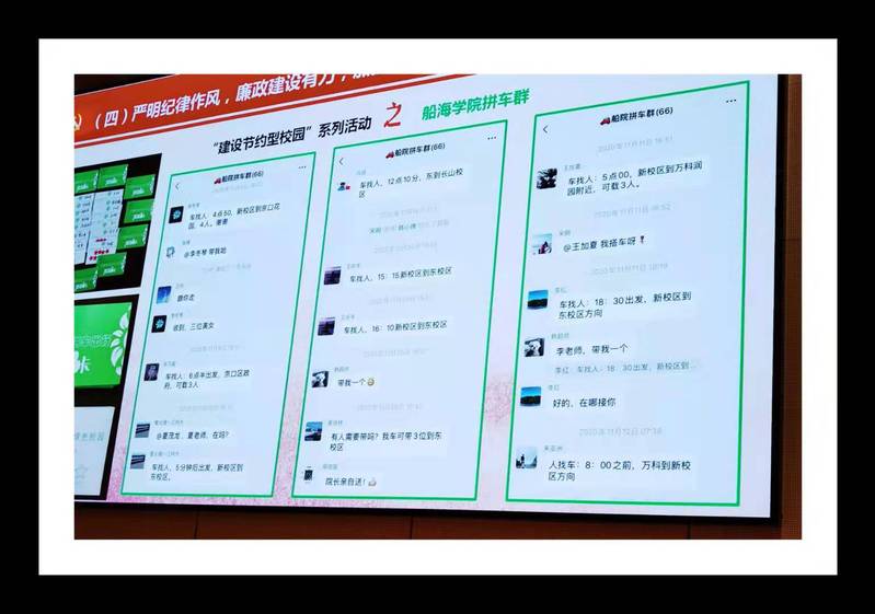 不积跬步,无以至千里。金秋十月,学校各党政机关、教学科研单位、基层党组织、师生代表组成18个代表队,近1000名师生昂首迈步参加环湖健步走活动。大家步伐矫健,精神焕发,在健步走运动中体味节能减排的美好风尚。为把节约、绿色、环保落到实处,学校严格公务车管理,合理安排校车,鼓励教职员工上下班相互拼车,倡导“幸福拼车,低碳出行”。船海学院组建了“共享低碳生活,共建绿色校园”微信拼车群,倡导广大教师低碳出行,并对积极共享行程资源的车主予以积分奖励。在学院拼车群,老师们主动分享行程,参与到公益顺风车的行动中。机械、人文、生技学院各团支部发出绿色单车骑行倡议,身体力行并且感受绿色节约、低碳环保的意义。环化学院学生会开展了为期三周的“低碳出行,荧光夜跑”活动,吸引了400多名同学参与,最终200多名同学坚持到最后。在能动学院 “校内徒步,为爱行走”第三届免费午餐“有爱就行”科大捐步活动中,学生们结伴而行,用公益捐步的方式,为建设节约型校园贡献一份力量。