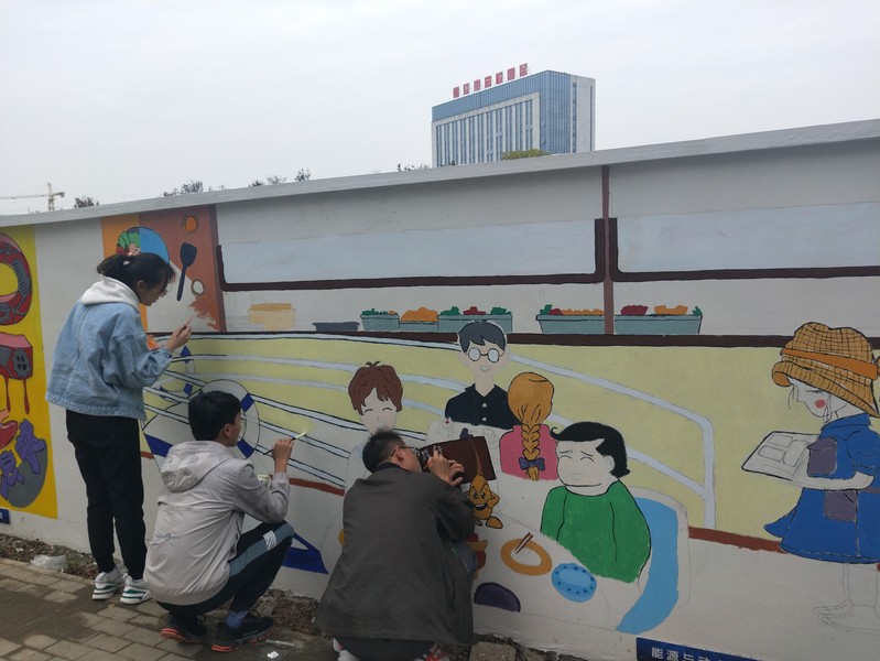 低碳创意,共建美好校园。为深入践行绿色发展理念,党委宣传部、团委举办了“节约型校园建设”主题墙绘艺术大赛。同学们以学院为单位,根据长山校区西门附近围墙划定的区域面积设计版面并且手绘上墙,展现独特创意与设计。同学们从校园日常生活中汲取灵感,发挥想象力,完成了集趣味性、创新性且紧扣绿色理念的作品。墙绘基调轻快、色彩丰富、图案生动,使用易上色不易掉落且不含有毒物质的丙烯颜料,给人眼前一亮的观感。11月,一场新奇有趣的创意粮食画活动在校园掀起以粮作画的热潮,吸引近百位同学组成的29支参赛队伍报名参加,共同体验粮食画的魅力。参赛各小组围绕“节约从身边做起,廉洁伴你我同行”主题发挥想象,巧妙构思,利用课余时间在教室和宿舍完成作画。计算机学院举办了“传播低碳理念,倡导绿色出行”宣传logo设计大赛,搭建让同学们展现对低碳生活理念理解和创新思维的平台。大家自由发挥,设计出创新美观的主题logo,不但提升了节约型校园建设文化氛围,还挖掘了同学们的创造潜力。