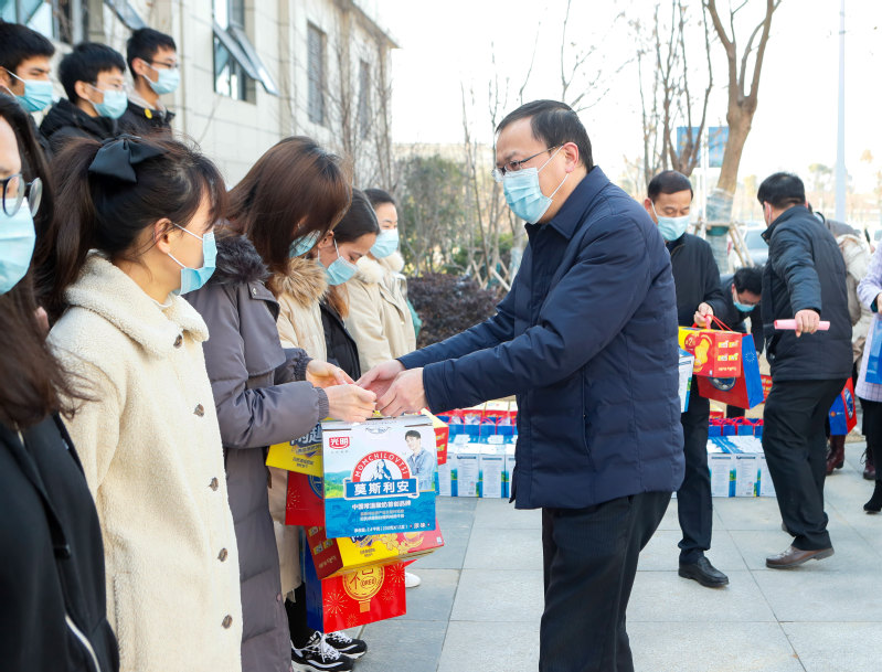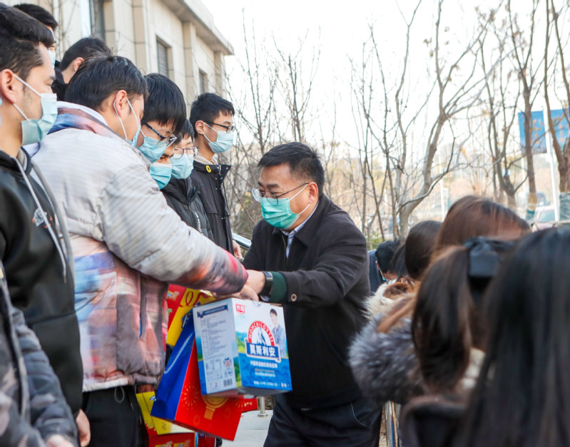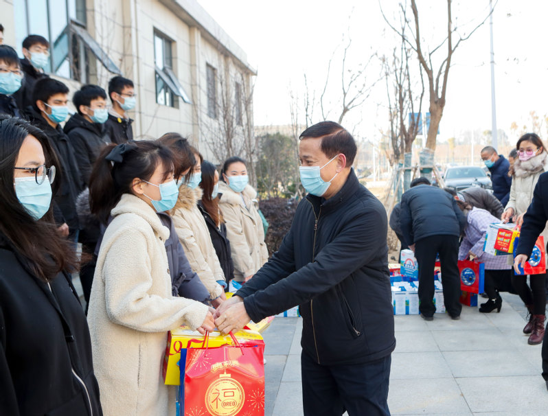 “在学校生活上有什么困难?”“你的家乡在哪里?”“要定期向家人汇报在校情况,别让他们担心”。2月4日上午,党委书记葛世伦、副校长汤建带队走访慰问寒假留校学生,详细了解因疫情影响而留校学生的实际需求,有针对性地给予指导和帮助,并送上新春慰问礼品。党办校办、宣传部、研究生工作部、团委、学生处、保卫处、后勤等部门负责人陪同慰问。