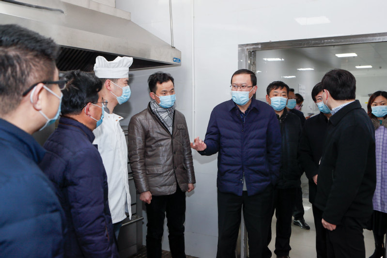 随后,副校长汤建来到校医院和西苑食堂,逐一走访了值班室和工作间,详细了解假期工作运行情况,并询问工作人员工作和身体情况,对寒假期间坚守一线岗位的工作人员表示感谢,并致以新春祝福。