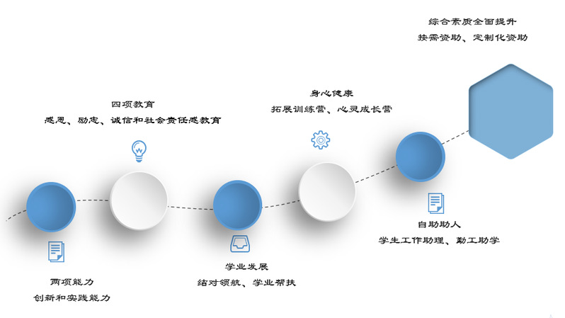 推动资助育人从“千人一面”向“一人一策”转变,根据不同家庭经济困难学生家庭经济状况、个人性格特点等情况,结合学生的职业发展规划、学业发展计划,为他们制定个性化资助方案,实现资助成效最大化。一方面,推行学业导师制度,聘请专业教师、行政管理人员等,根据不同学生需求,提供个性化资助服务,增强资助育人工作实效。另一方面,除40余项常态化奖助学金(含国家、学校及社会捐赠奖助学金)外,根据学生可能出现的各类情况设置专项资助。比如,2020年疫情发生后,学校2月9日便出台《关于开展新冠肺炎疫情专项资助工作的通知》,设立疫情专项资助,及时摸排受疫情影响的学生情况,2月11日就完成第一批专项补助发放工作。春季学期还发放了8.5万元专项困难补助和2万余只口罩,为3000名同学赠送三个月手机流量包。秋季学期开学后,校院联动采集受疫情、洪灾影响的学生信息,为200名学生发放专项困难补助8万元,帮助他们解除后顾之忧。
