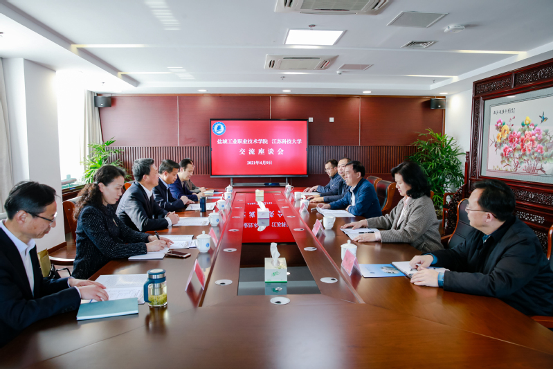 4月9日下午,盐城工业职业技术学院党委书记邵从清、校长瞿才新一行来qmh官网调研交流。校党委书记葛世伦,党委常委、副校长嵇春艳参加调研座谈。