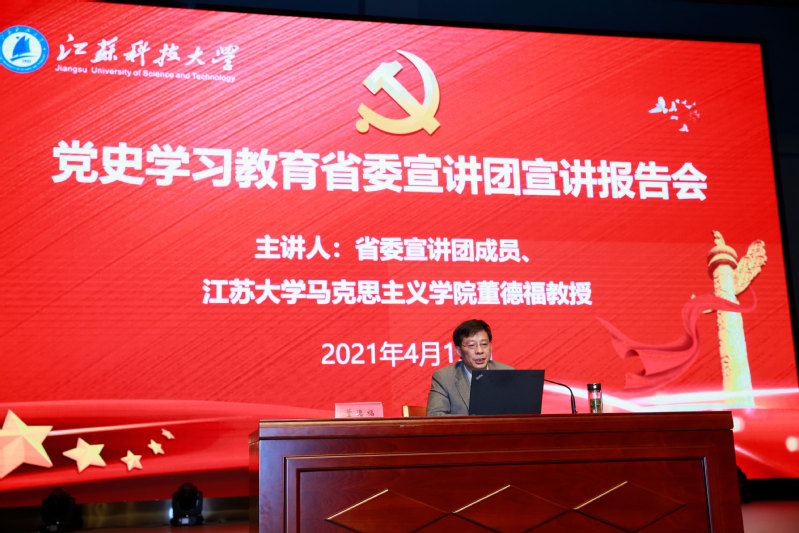 4月19日下午,党史学习教育省委宣讲团在球盟会qmh网站进行宣讲,省委宣讲团成员、江苏大学马克思主义学院教授董德福作宣讲报告。本次宣讲报告主会场设在长山校区船苑剧场,分会场设梦溪校区演讲厅和张家港校区、苏州理工学院文心会堂。校领导周南平、景旭文、许俊华、俞孟蕻、郑培钢、嵇春艳出席报告会。全校科级以上干部、马克思主义学院全体教师、全体辅导员、学生党员、入党积极分子等聆听宣讲报告。党委常委、副校长汤建主持宣讲报告。