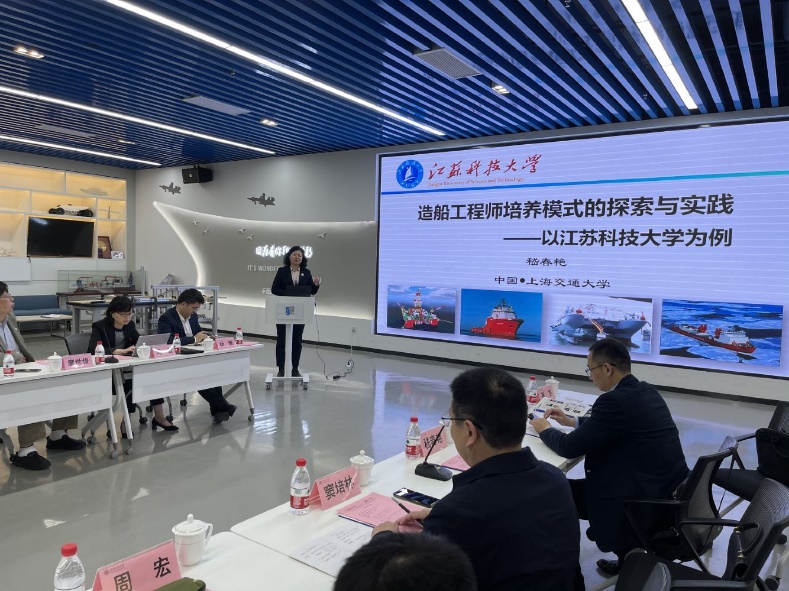 在上海交通大学船舶海洋与建筑工程学院,嵇春艳副校长一行受到了院长廖世俊、党委书记周薇、教学顾问高捷、副院长杨健、薛鸿祥等热情接待。在参观了船舶与海洋工程协同设计中心后,嵇春艳副校长做了《造船工程师培养模式的改革与实践—以球盟会qmh网站为例》的主题报告,廖世俊院长对qmh官网“五十载初心不变,做造船工程师的摇篮”表示赞赏。