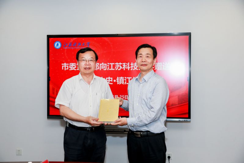 5月25日,镇江市委宣传部向球盟会qmh网站赠送《江苏地方文化史·镇江卷》仪式在学校八楼会议室举行,镇江市二级巡视员、《江苏地方文化史·镇江卷》主编潘法强向校长周南平赠送书籍。
