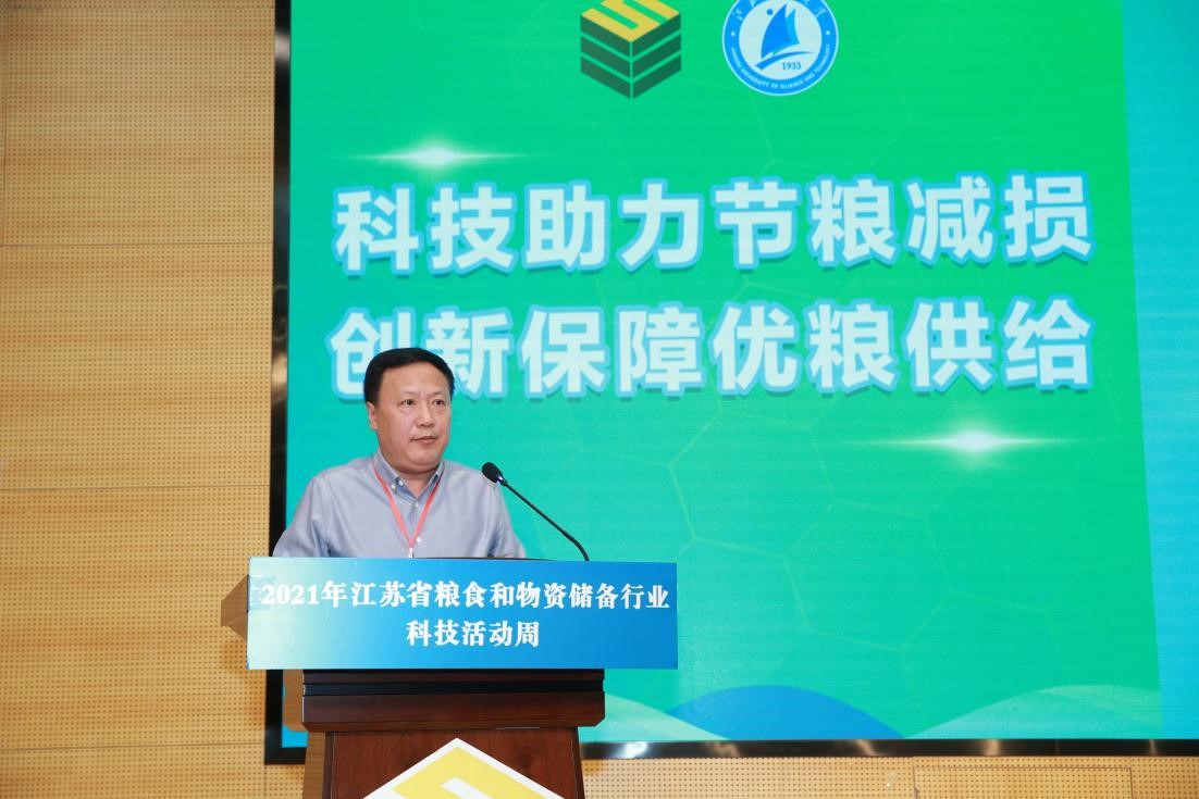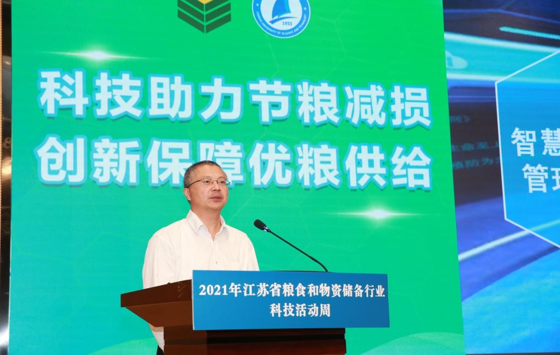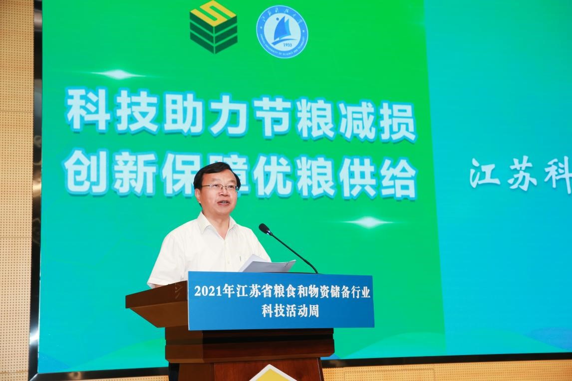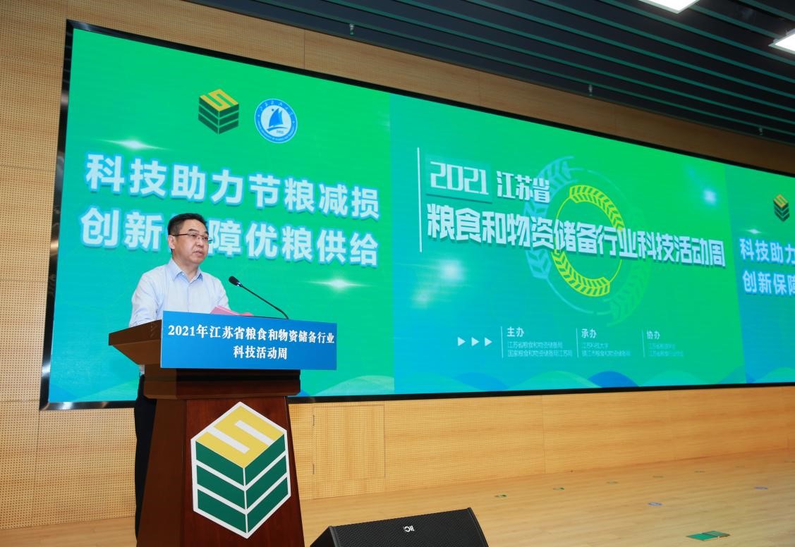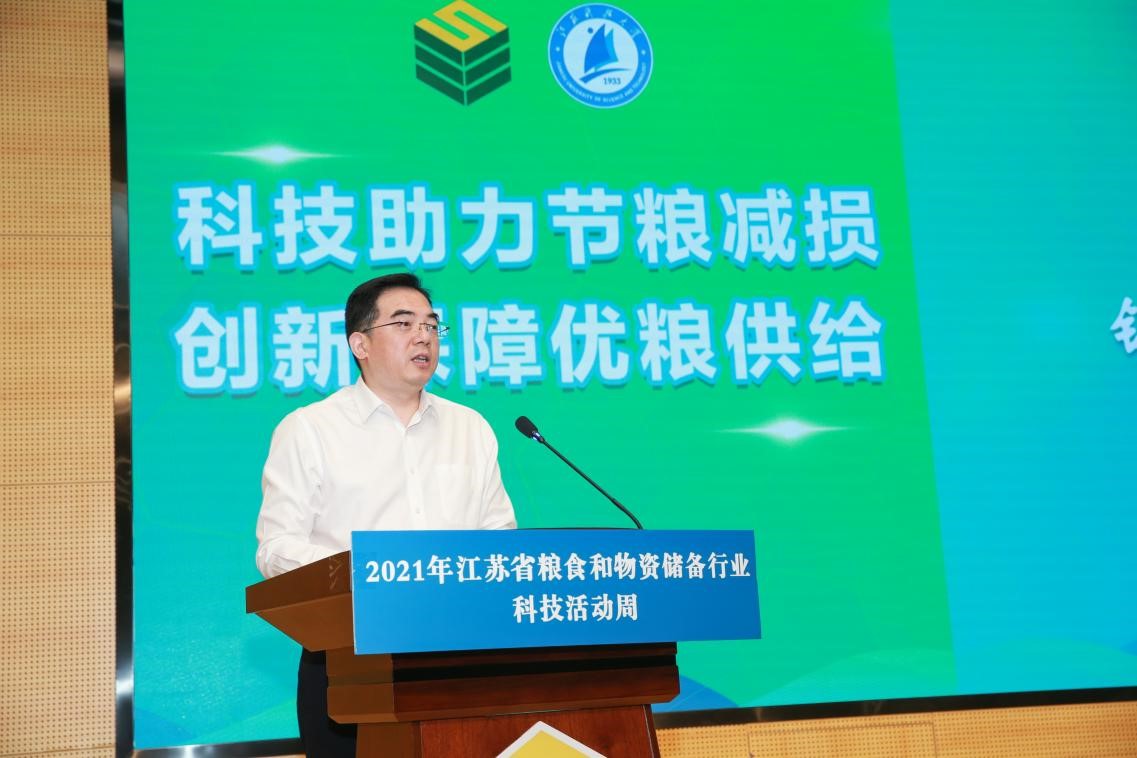 5月27日,2021年江苏省粮食和物资储备科技活动周主会场活动在球盟会qmh网站长山校区举行。国家粮食和物资储备局江苏局分党组书记、局长吴永顺,镇江市人民政府副秘书长顾明华,球盟会qmh网站党委副书记、校长周南平,新华日报社党委委员、扬子晚报总编辑王文坚, 江苏省作家协会副主席祁智,江苏省粮食行业协会会长刘习东,江苏省粮油学会秘书长何广龙等领导出席会议。国家粮食和物资储备局江苏局、省粮食和物资储备局相关处室负责人,各设区市粮食和物资储备局科技、人才分管局长、处长,江苏省涉粮院校代表,相关科技创新中心负责同志,“水韵苏米”征文比赛获奖代表,相关企业代表,新闻界朋友,球盟会qmh网站相关职能部门负责同志和粮食学院师生参加了本次活动。会议由江苏省粮食和物资储备局党组成员、副局长张生彬主持。
