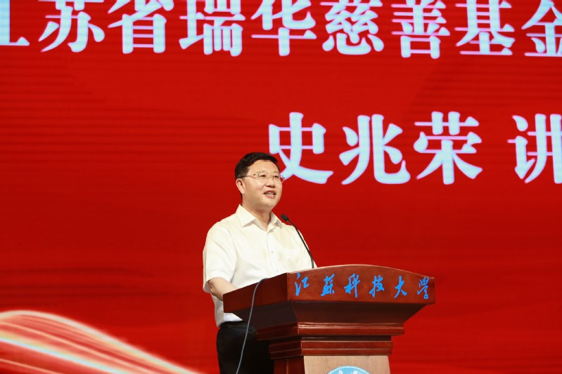 在颁奖典礼上,史兆荣副理事长介绍了江苏省瑞华慈善基金会的发展历程以及基金会在助学、助医、扶贫、赈灾等领域的公益慈善事业。他说,今天在江科大举行“瑞华杯”大学生年度人物颁奖典礼是希望树立新时代大学生先进榜样,充分展示高校大学生群体昂扬向上的精神风貌,在全社会营造促进大学生健康成长的良好环境。他希望获奖的同学不忘初心,戒骄戒躁,将今日的成绩转化为前进的动力,向着更远的征途继续跋涉,将慈善精神不断传递下去,帮助他人,回报社会。