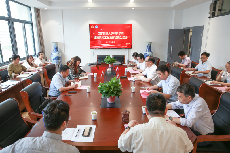 7月2日,在庆祝中国共产党的百年华诞之际,根据学校和学院两级党委统一部署,材料学院焊接系教工党支部召开组织生活会。参加本次会议的除了焊接系教工党支部党员外,校党委副书记许俊华、学院副院长李瑞峰分别以普通党员身份参加组织生活会,江苏省委教育工委党史学习教育派出第四指导组成员、南通大学杂志社副社长邵德进教授,第四指导组组员、苏州大学马克思主义学院党委组织员蒋慧老师也来到会议现场进行专门指导,组织生活会由焊接系教工党支部书记胥国祥主持。