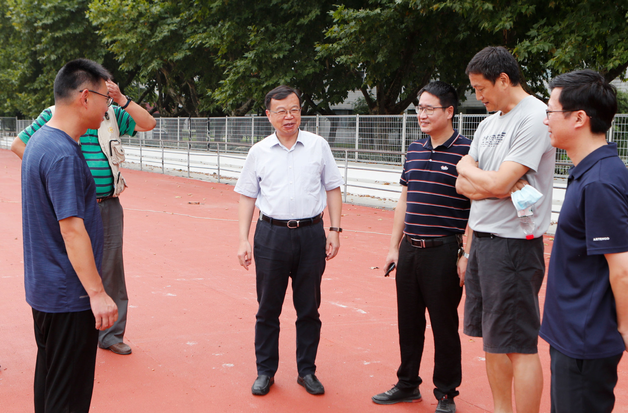 8月24日上午,周南平校长到梦溪校区操场、宿舍楼改建翻新工程的施工现场,实地检查工程进展情况。校办、基建处、后勤管理处、保卫处、信息化办、深蓝学院等部门领导陪同检查。