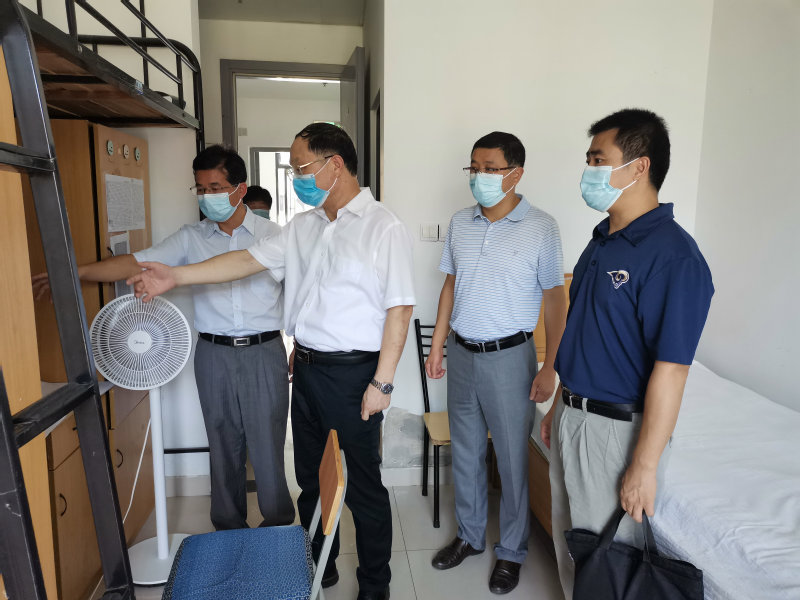 本次现场督查采用“四不两直”的工作方式,深入一线重点防控区域,先后走访了校区出入口、收发室、值班室、隔离点、校医院、图书馆、食堂、施工现场等场所,实地查看进出校园管理、疫情防控物资储备、发热师生隔离点管理、校区值守及后勤服务保障等情况;抽查了食堂、宿舍、楼宇电梯等公共场所的消杀情况;了解了健康监测、学生返校、疫苗接种、线上课程准备等各项疫情处置方案及应急预案。三个小组分别就督查中发现的问题和薄弱环节提出了监督意见,压紧压实各部门防控责任,落实落细各项防控保障措施,为新学期开学提供坚实保障。
