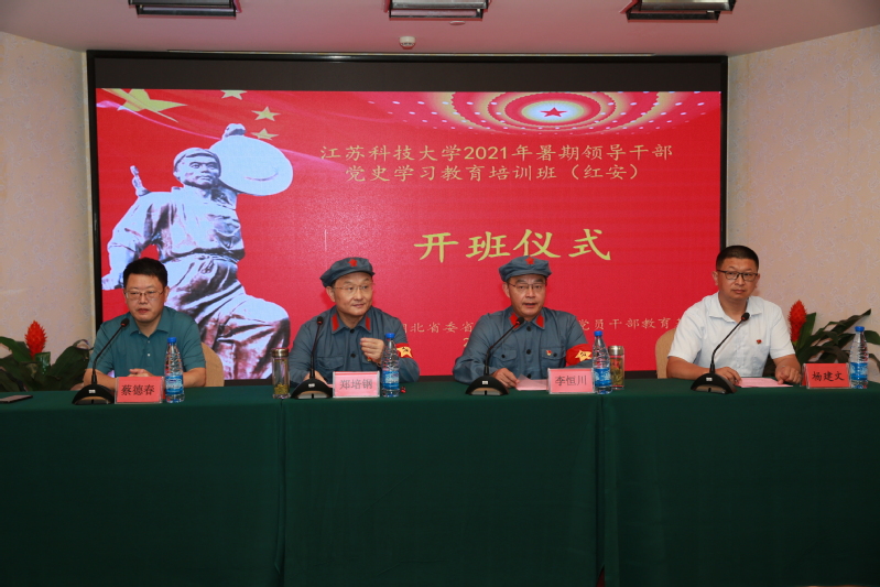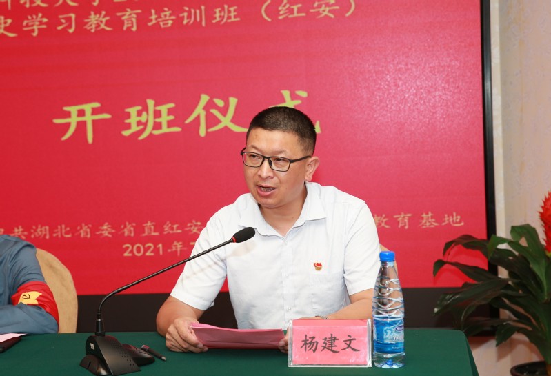 7月23日上午,培训开班仪式在红安七里坪党员干部教育基地举行,基地主任杨建文致欢迎辞,校党委常委、校纪委书记郑培钢作开班动员,校党委常委、组织部长李恒川主持。