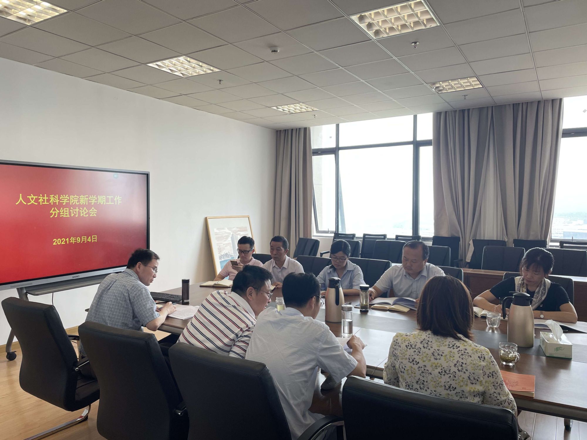 马克思主义学院与会人员结合学院教学科研工作进行讨论交流。学院领导对新学期提出新要求,并对新学期工作开展做出具体安排。