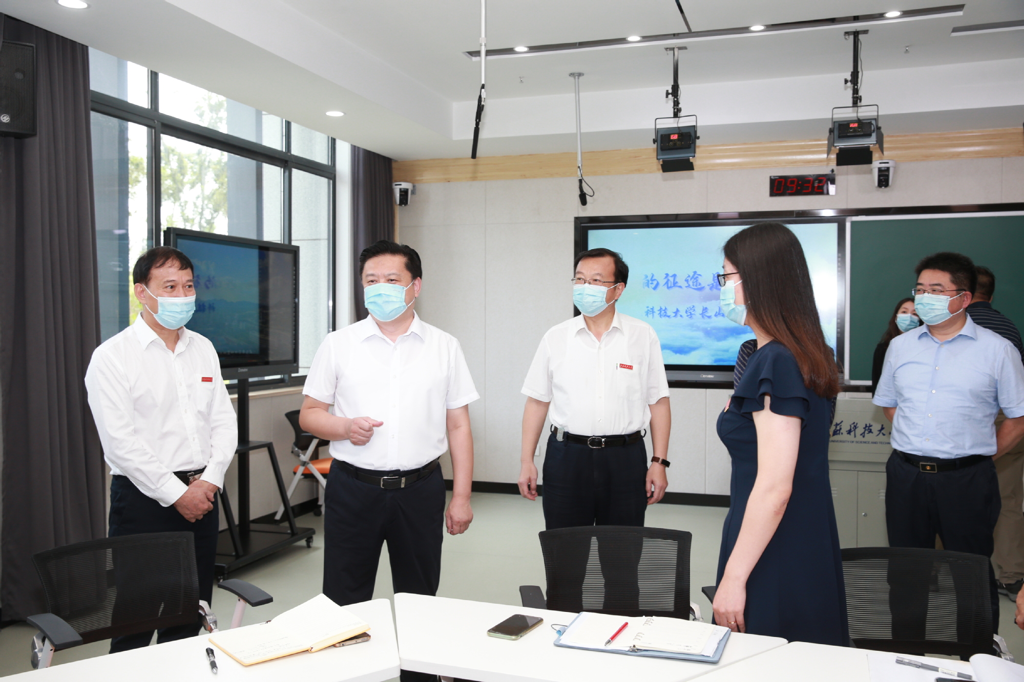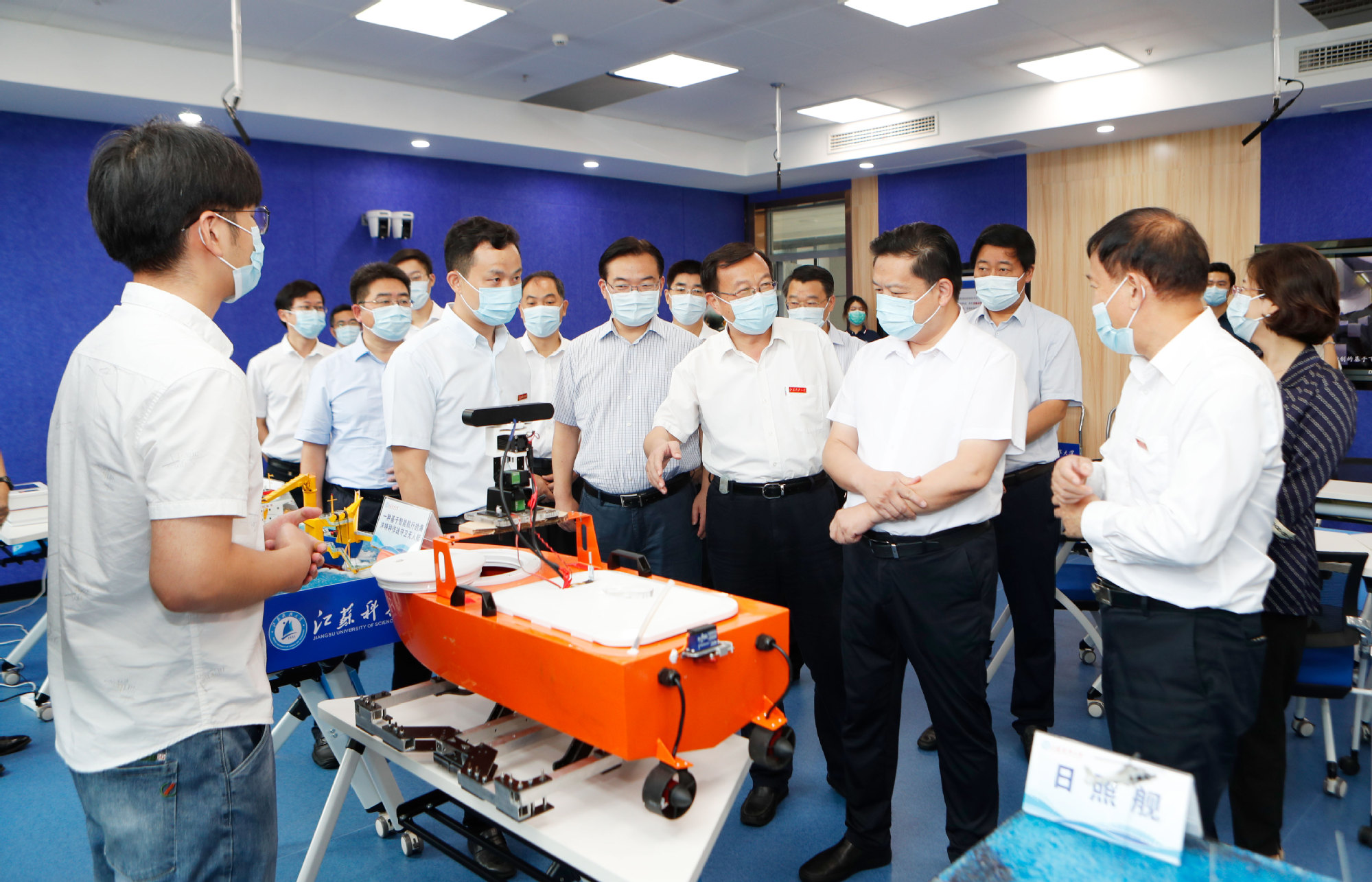 在长山校区文理大楼智慧教室,徐曙海市长与教师代表亲切交流。徐曙海市长一行还参观了海韵湖大坝,观看了学校参与研发的海洋装备模型,听取师生现场介绍,了解学校在船舶、海洋、蚕桑等方面取得的科研成果。观看了学校宣传片之后,校党委书记葛世伦介绍了学校近期在人才培养方面取得的新进展。