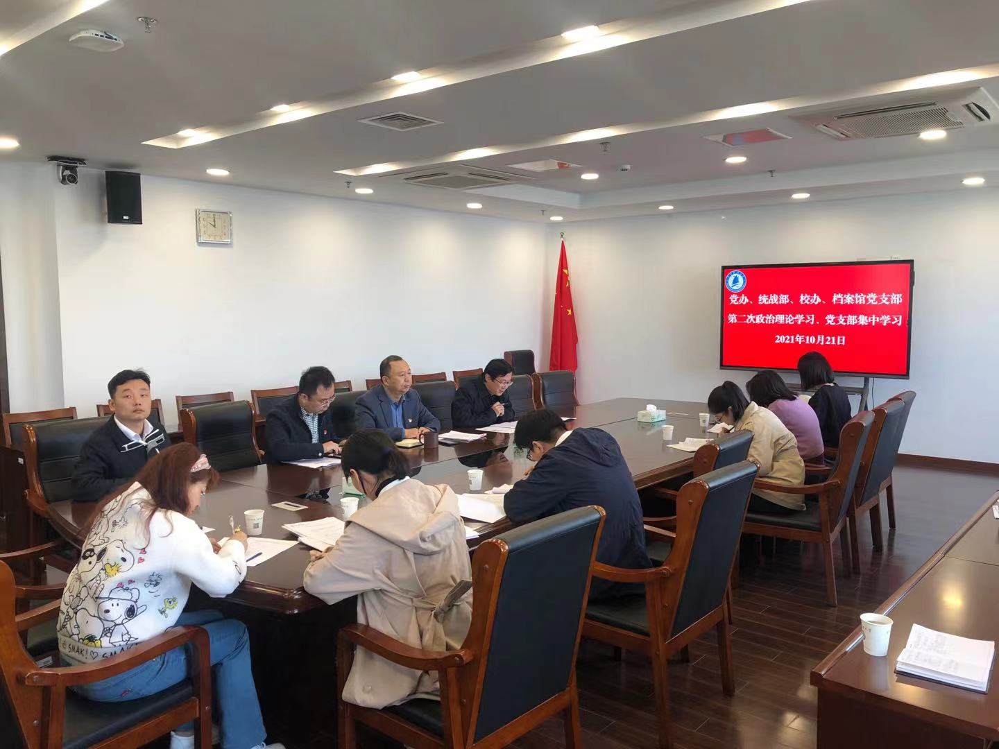 党办、统战部、校办、档案馆党支部围绕学习内容开展多种形式的交流讨论。张羽老师提出,基层党组织的组织力就是战斗力,学校高水平大学建设重任与我们息息相关,每位党员要提高政治站位,充分发挥基层党组织战斗堡垒作用。