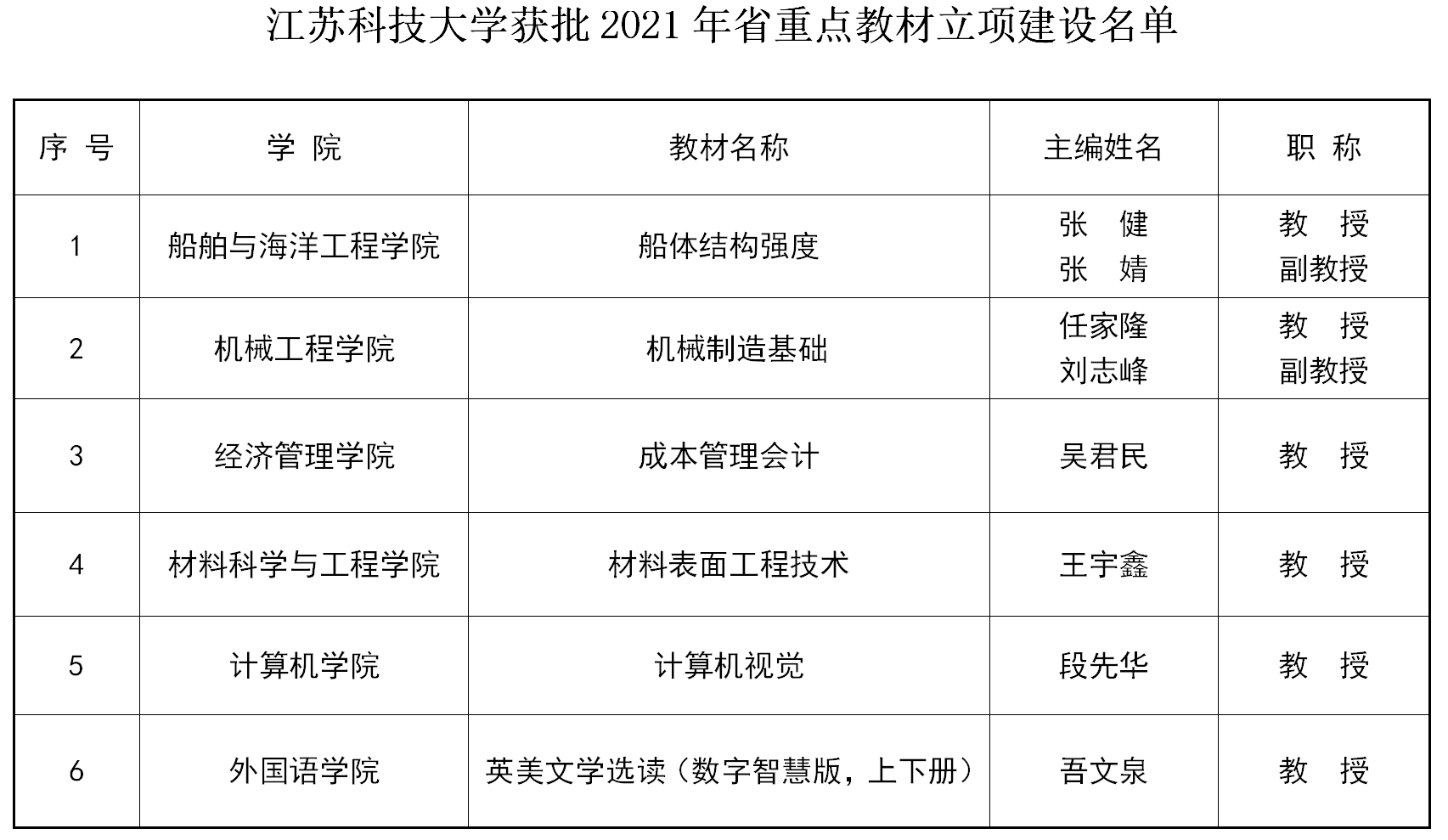 日前,江苏省高等教育学会公布了2021年江苏省高等学校重点教材立项建设名单(苏高教会〔2021〕39号),qmh官网张健教授编著的《船体结构强度》等6部教材获批省重点教材立项建设。