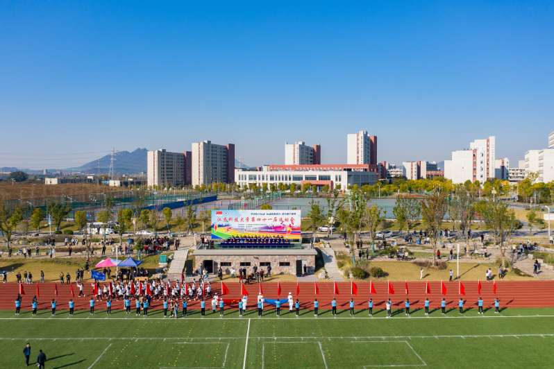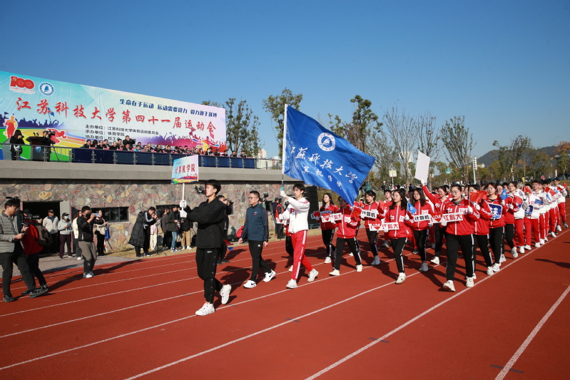 伴随着激昂的运动员进行曲,国旗、校旗方队,18个学院的运动员在各学院学工领导的带领下,身着整齐的服装,迈着铿锵有力的步伐依次入场,彰显了江科大学子积极昂扬、拼搏不息的精神风貌。