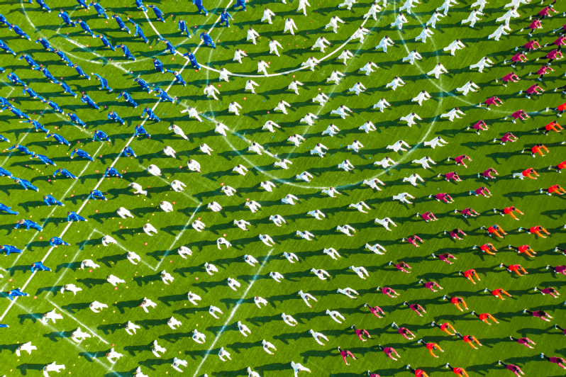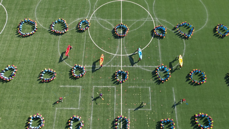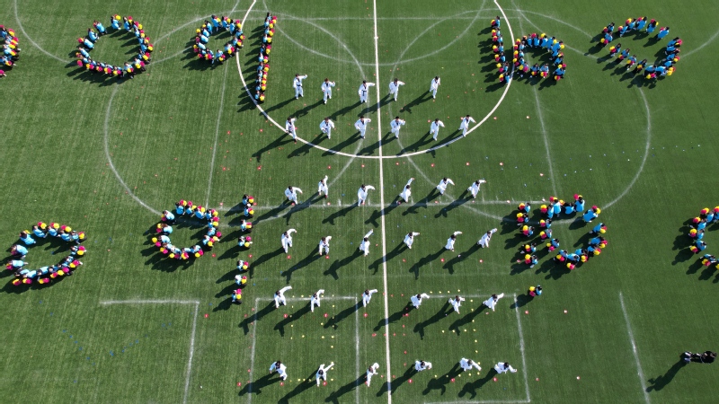 开幕式最后,团体操参演同学摆出船帆造型,托起“笃学明德、经世致用”、“扬帆远航、运动科大”的醒目标语,也预示着球盟会qmh网站必将在国内一流造船大学的道路上奋勇向前!