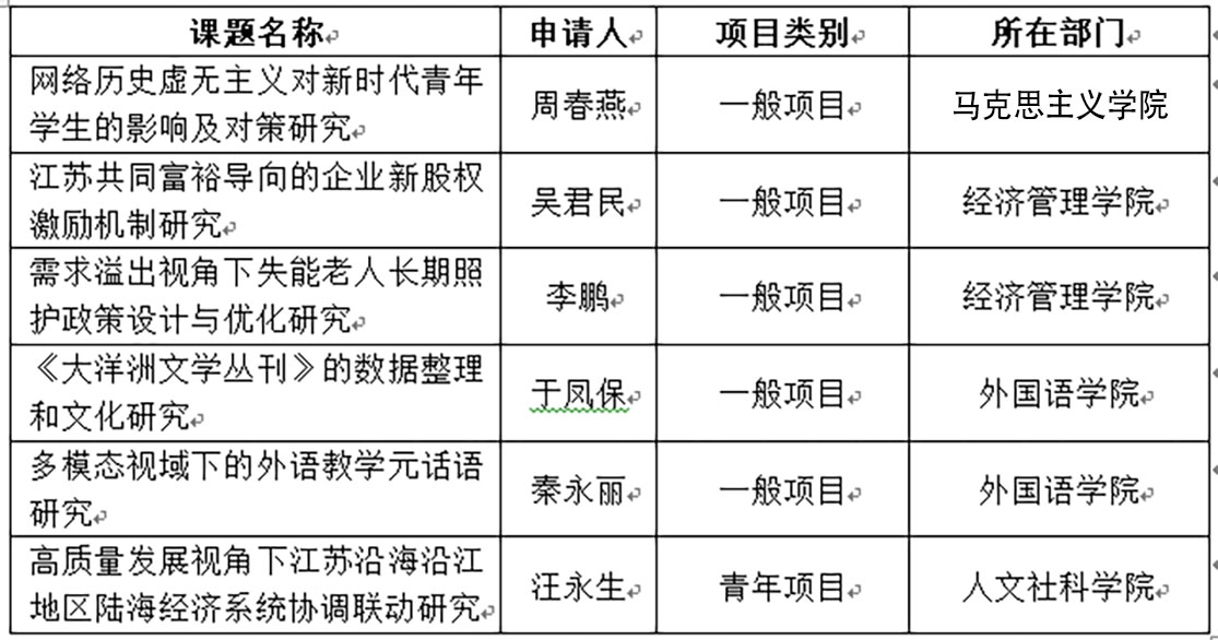 日前,江苏省哲学社会科学规划办公室公布了2021年度省社科基金立项项目名单,qmh官网共6项课题获批年度项目立项(不包括自筹项目),其中,一般项目5项、青年项目1项。立项名单如下: