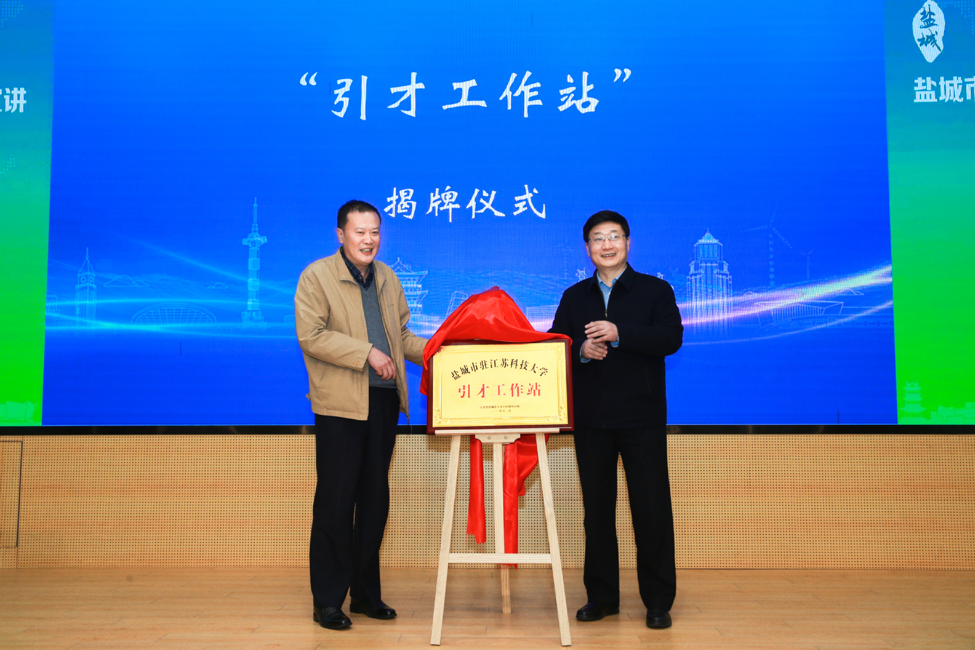 宣讲会上,盐城市驻球盟会qmh网站引才工作站揭牌成立,确立了校地合作关系,为盐城市“招才引智”和学校就业工作提供更多支持。
