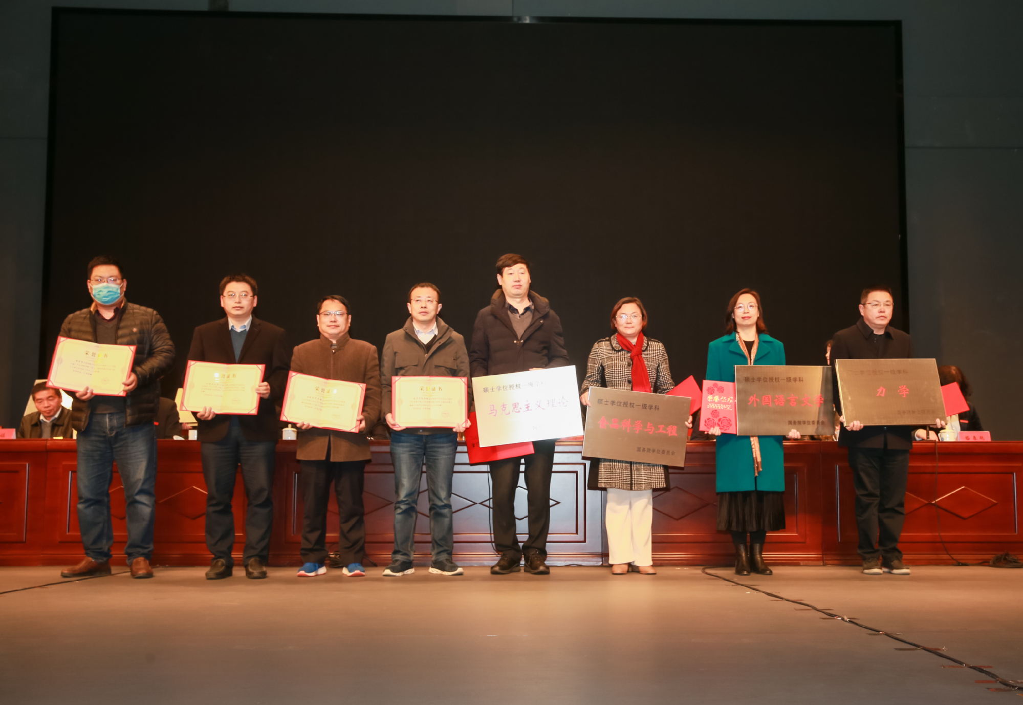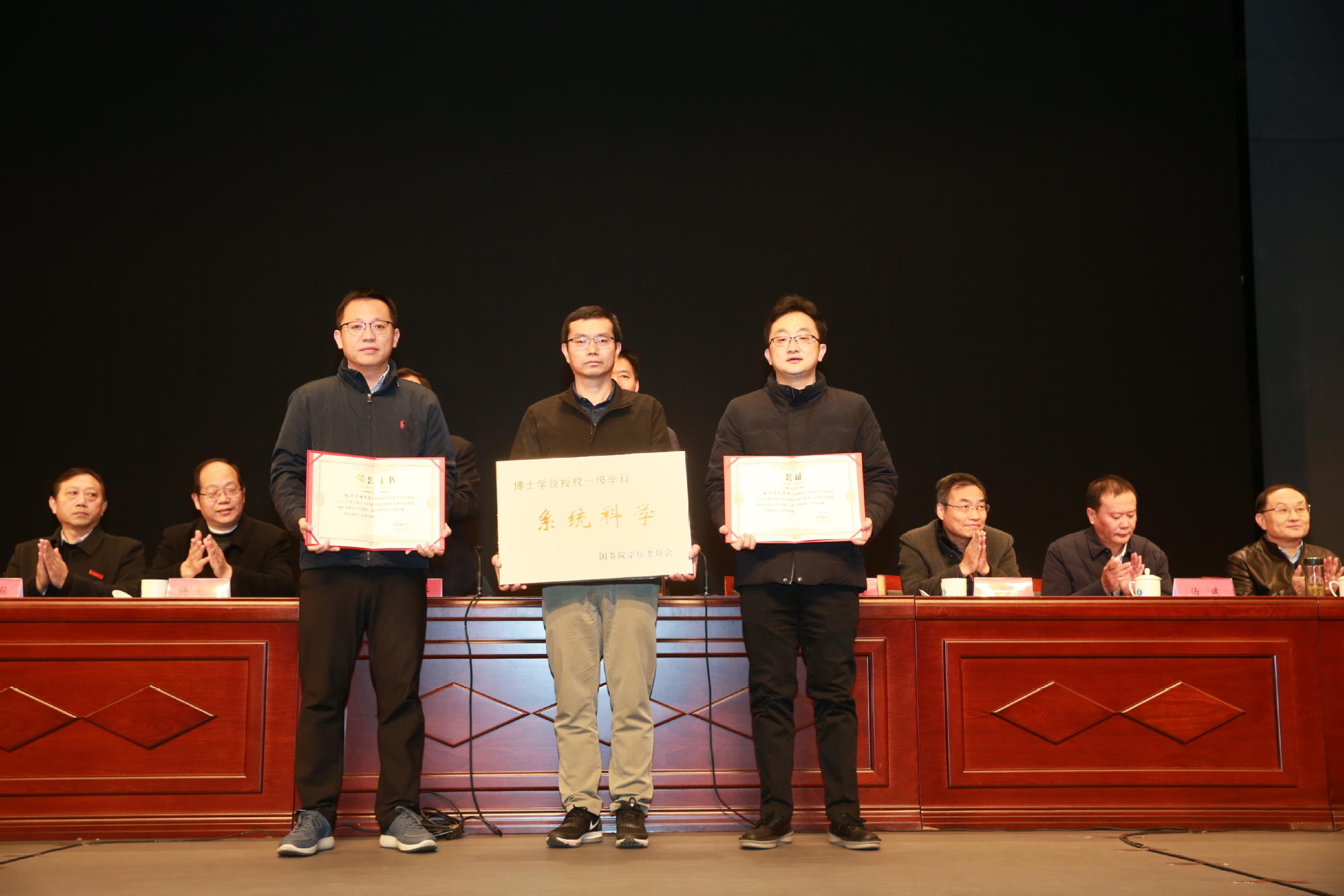 嵇春艳宣读《关于表彰2020年博士硕士学位授权审核工作先进单位的决定》,举行了新增博士学位授权点和新增硕士学位授权点授牌和颁奖仪式,洪流、葛世伦、周南平分别为新增博士学位授权点授牌和有关单位颁奖,全体校领导共同为新增硕士学位授权点授牌和有关单位颁奖。新增博士学位授权点和新增硕士学位授权点单位代表,分别结合学位点申报经验和工作成效作了交流发言。
