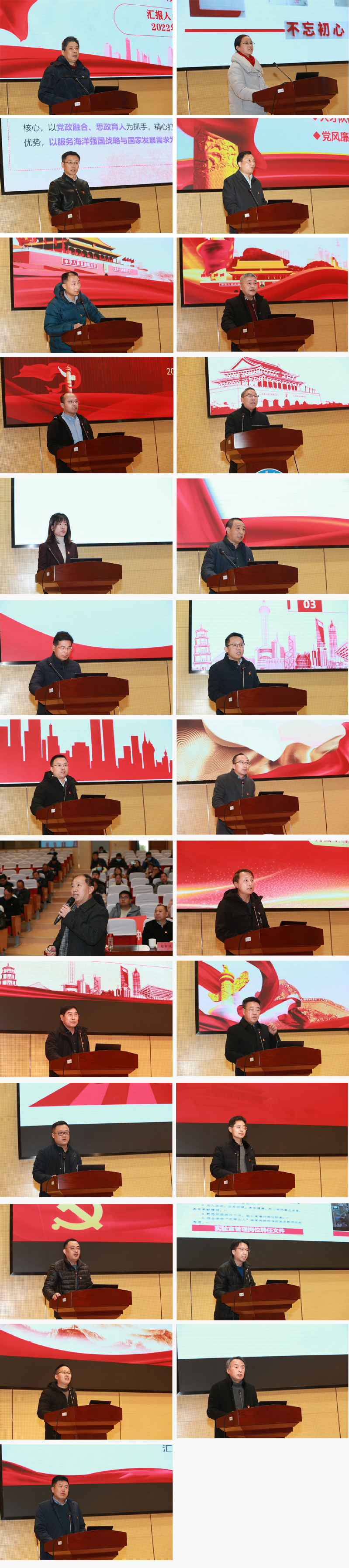会上,25位二级党组织书记依次从落实党建和意识形态工作责任制、党风廉政建设责任制、巩固深化“不忘初心,牢记使命”主题教育成果等方面,深入阐述了落实全面从严治党责任情况,总结了一年来抓基层党建工作具体做法和经验体会,重点汇报了党建工作的特色亮点、成果成效,如船舶与海洋工程学院围绕一个机制、八个聚焦、六项打造,建立“锤实镰利”纵横格局工作体系;经济管理学院党委通过完善二级学院治理体系、强化人才队伍建设、打造育人机制与模式,推进学院党建工作与业务工作深度融合,引领学院高质量发展;机械工程学院党委通过机制建设、督导检查、模范引领、党建融合,推进党支部建设提质增效;生物技术学院、蚕研所党委通过传承发扬“春蚕精神”、建设“春蚕服务社”,在对接服务“乡村振兴”“一带一路”中擦亮党建品牌名片等,亮点突出、精彩纷呈、成效显著。各二级党组织书记也深刻剖析了当前本单位党建工作存在的突出问题,提出下一步工作思路及整改措施。