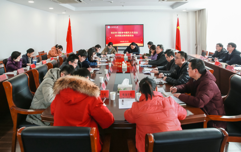 根据上级有关部署,为广泛征求意见建议,做好党史学习教育专题民主生活会会前准备,1月7日下午,学校在行政楼八楼会议室召开党史学习教育专题民主生活会征求意见教师座谈会。校党委副书记、副校长景旭文,党委办公室、组织部、宣传部、校纪检监察机关、人事处、教务处、科技处、人文社科处、研究生院、后勤管理处等部门领导和各学院教师代表参加座谈。会议由党委教师工作部部长、人事处处长朱志宇主持。