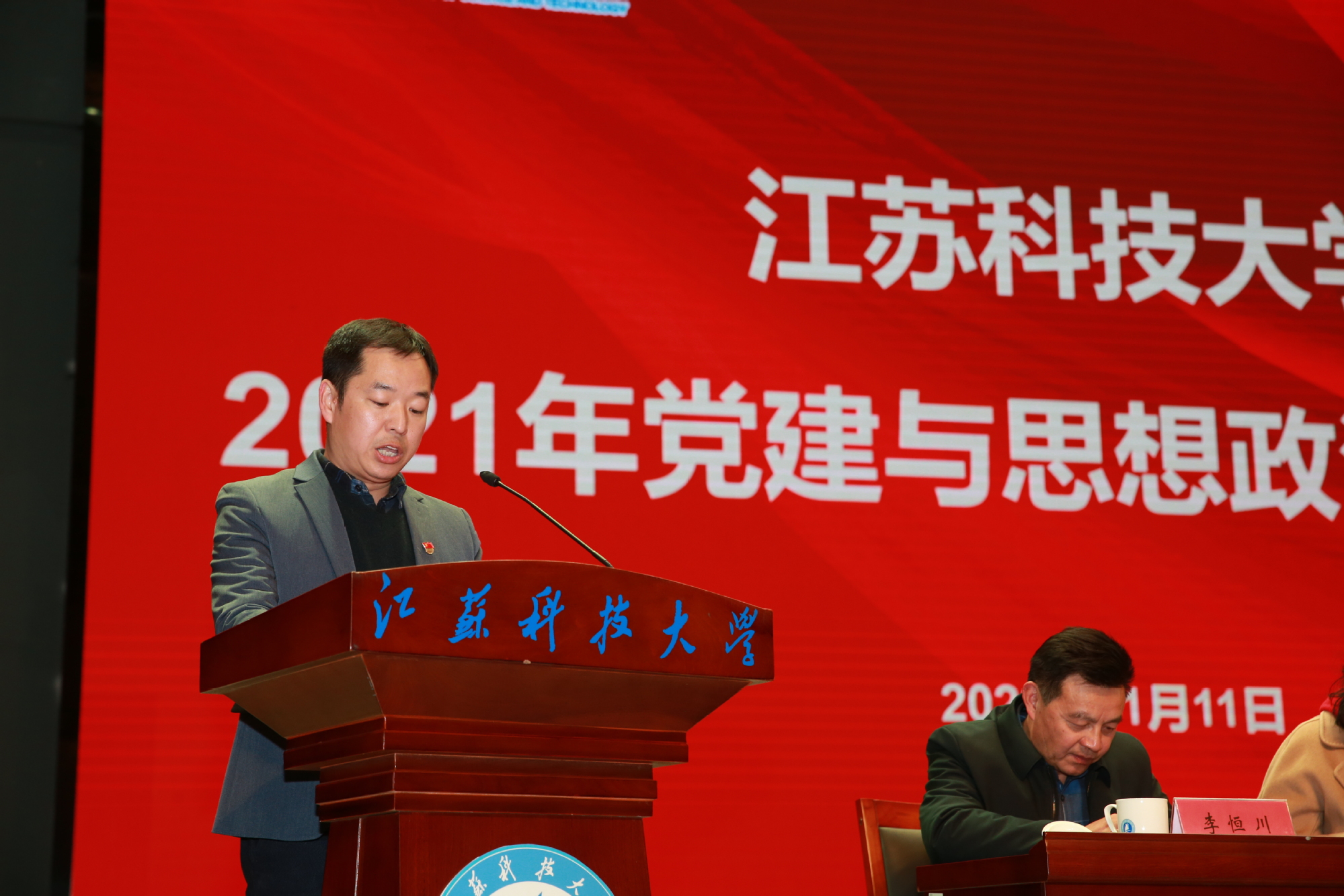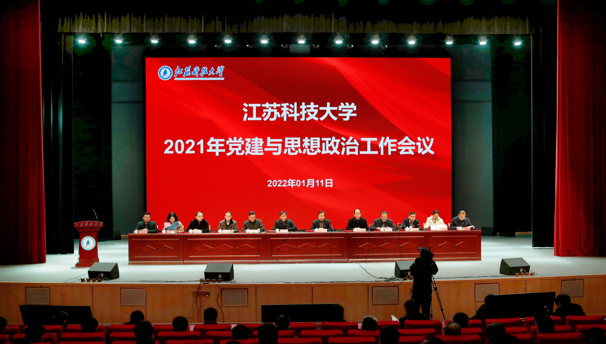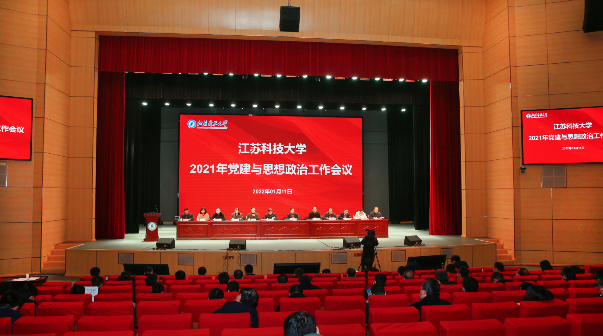 远航风帆张满、奋进起跑2022之际,球盟会qmh网站党委于1月11日下午在长山校区船苑剧场召开党建与思想政治工作会议。校领导葛世伦、周南平、景旭文、许俊华、王加友、汤建、俞孟蕻、郑培钢、谈镇、嵇春艳、任南,校党委常委李恒川、刘新波出席会议。中层干部、党支部书记、思政理论课教师、辅导员、组织员、统战员、民主党派负责人等300余人参会。张家港校区、苏州理工学院领导班子、中层干部、辅导员、党支部书记等60余人通过视频直播同步收看会议。大会由党委常委、副校长汤建主持。