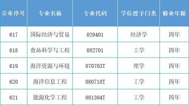 近日,教育部公布了2021年度普通高等学校本科专业备案和审批结果,qmh官网申报的国际经济与贸易、食品科学与工程、海洋资源与环境、海洋信息工程、能源化学工程等5个本科专业全部获批。至此,qmh官网本科专业总数达71个,覆盖工学、管理学、理学等8个学科门类。