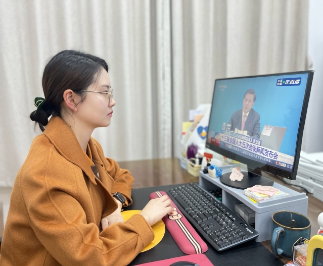 中国的“两会时间”也是世界的“中国时间”,船舶与海洋工程学院组织员陈淑媛表示,要把学习宣传贯彻两会精神、党的二十大精神作为贯穿全年的重大政治任务落细落实,认真做好思想引导工作。