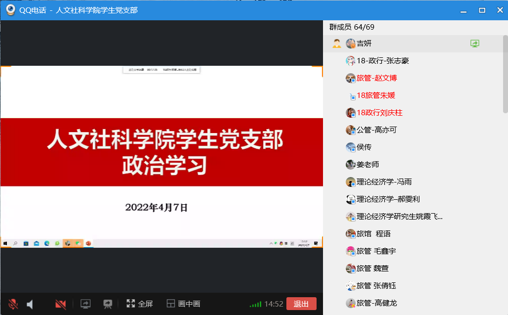 能源与动力学院学生党支部一致认为,要严于律己,发挥模范带头作用,严格遵守学校的各项规章制度和防疫政策,在科研上要勇于创新,为学校的高水平大学建设出一份力。