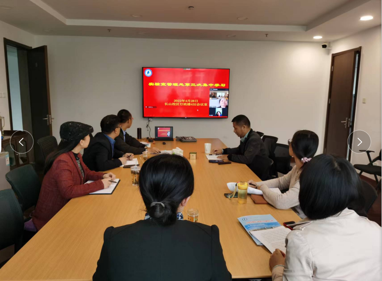 实验室管理处全体党员结合本职工作,讨论了实验室安全教育与准入工作相关制度,就如何更好地做好实验室安全准入,加强实验室安全教育工作积极建言献策。
