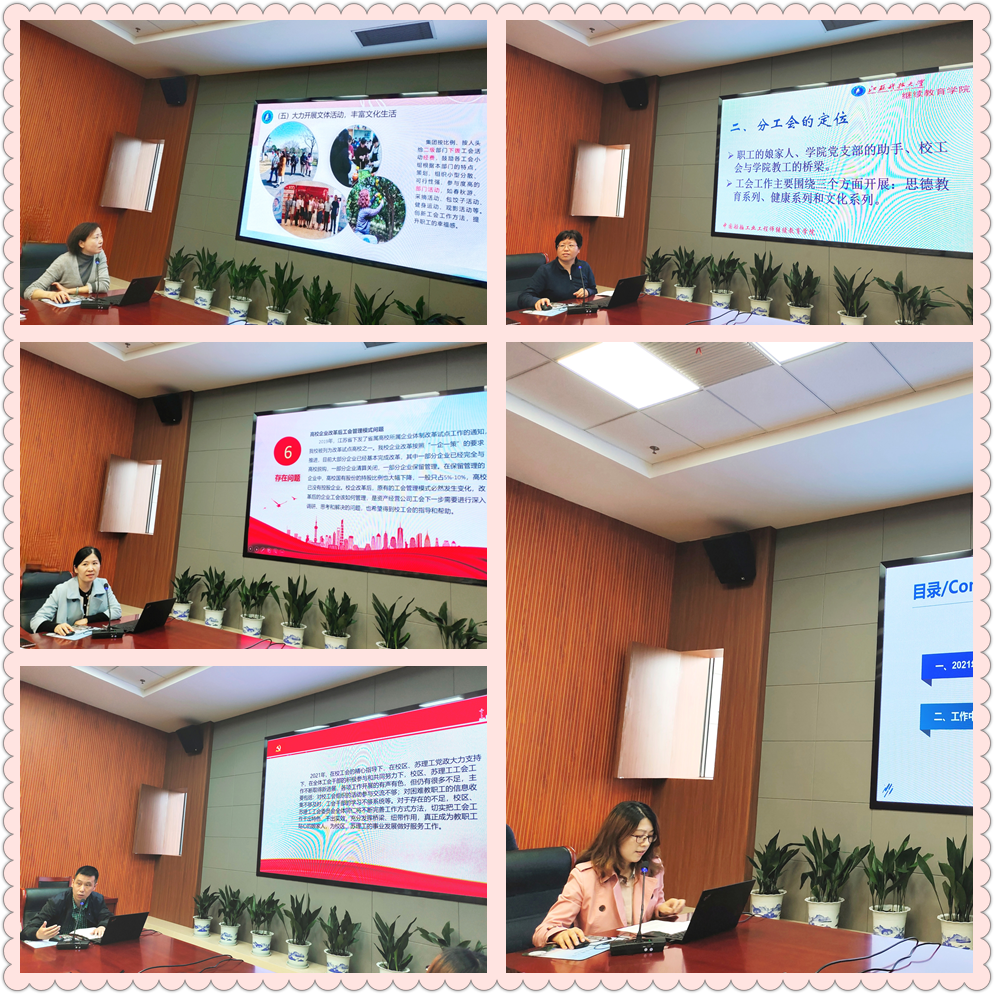 校工会常务副主席郭永强作了开场讲话,他表示,本次活动旨在加强qmh官网工会干部交流工作、总结经验,提高基层工会的工作质量和水平,进一步推动qmh官网二级工会工作有新作为新发展。随后各位工会主席图文并茂地汇报了2021年度二级教代会、工会小家建设、服务教师、文体活动、疫情防控形势下的工会作为等方面的工会工作。
