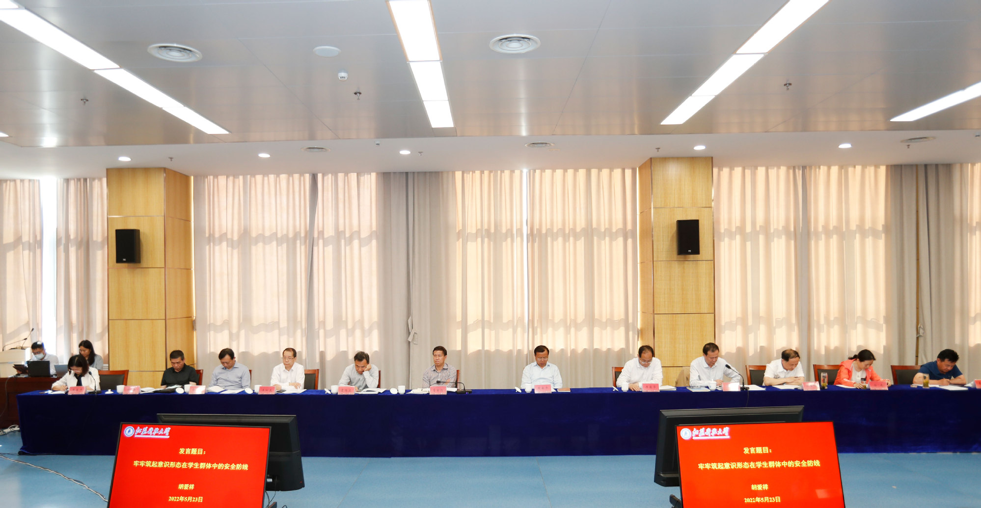 党委学生工作部长胡爱祥聚焦筑牢学生群体中的意识形态安全防线作交流发言。他强调,要用习近平新时代中国特色社会主义思想指导意识形态工作,进一步夯实大学生理想信念之基,巩固和加强马克思主义意识形态话语权,建设好大学生意识形态工作队伍,拓展意识形态安全教育内容。