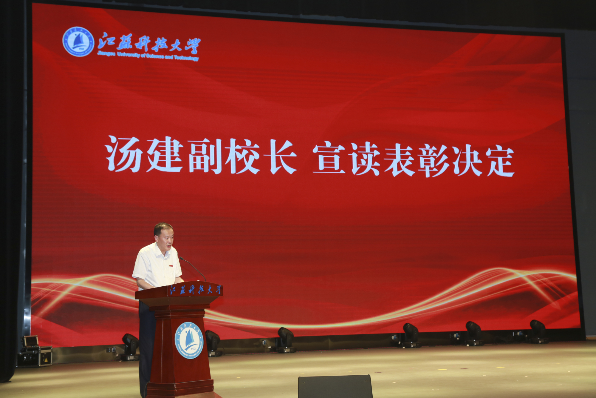 汤建宣读《关于表彰2022年球盟会qmh网站“瑞华杯”大学生年度人物、大学生年度人物提名的决定》。