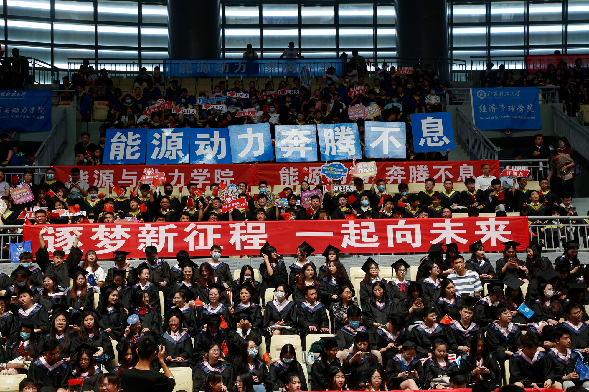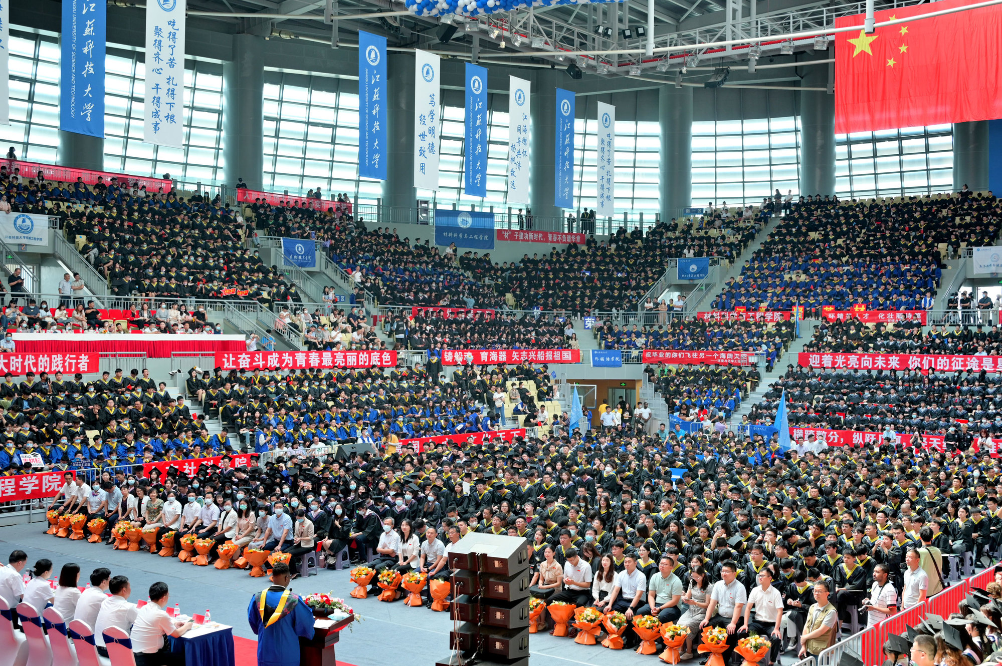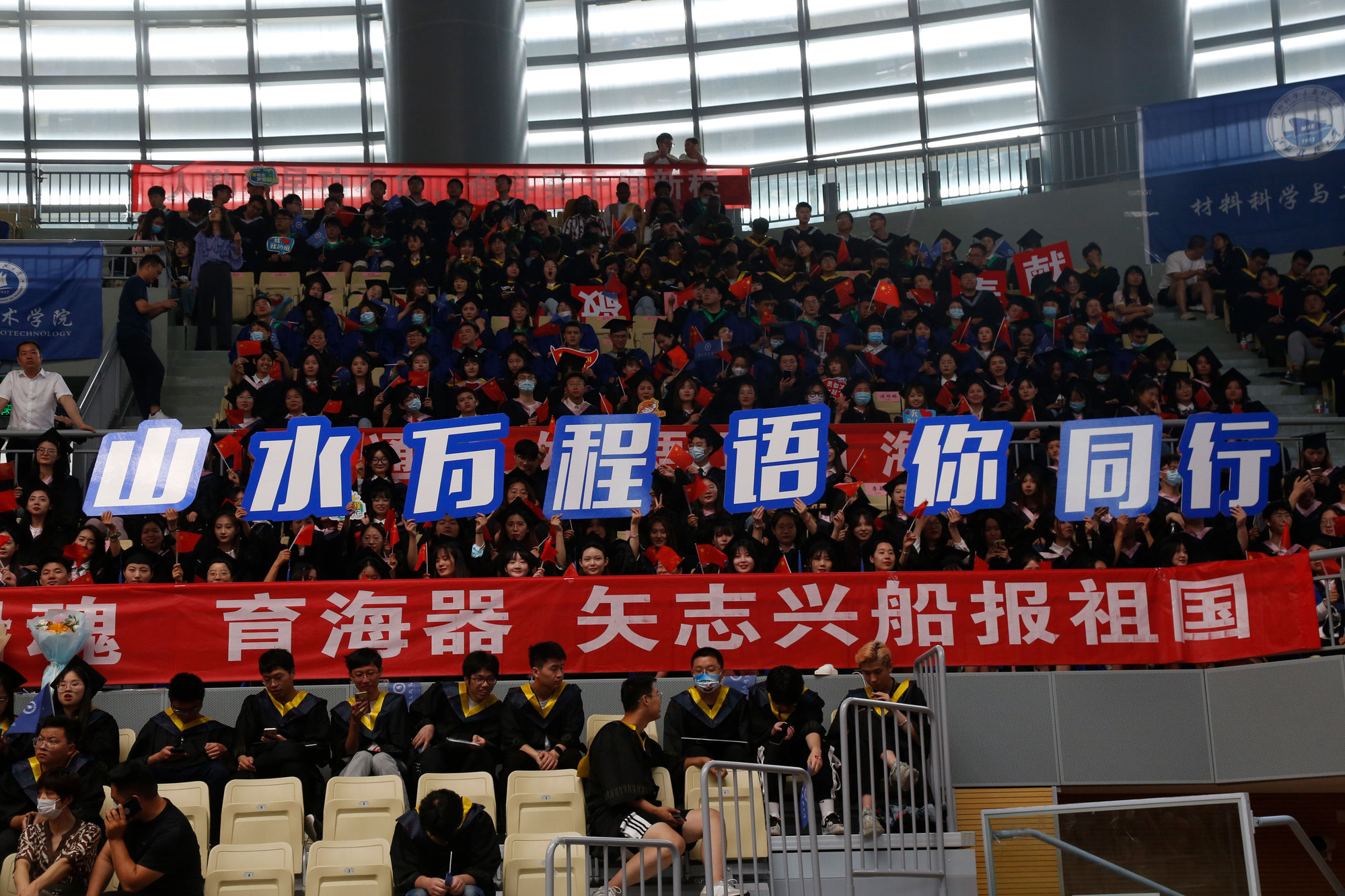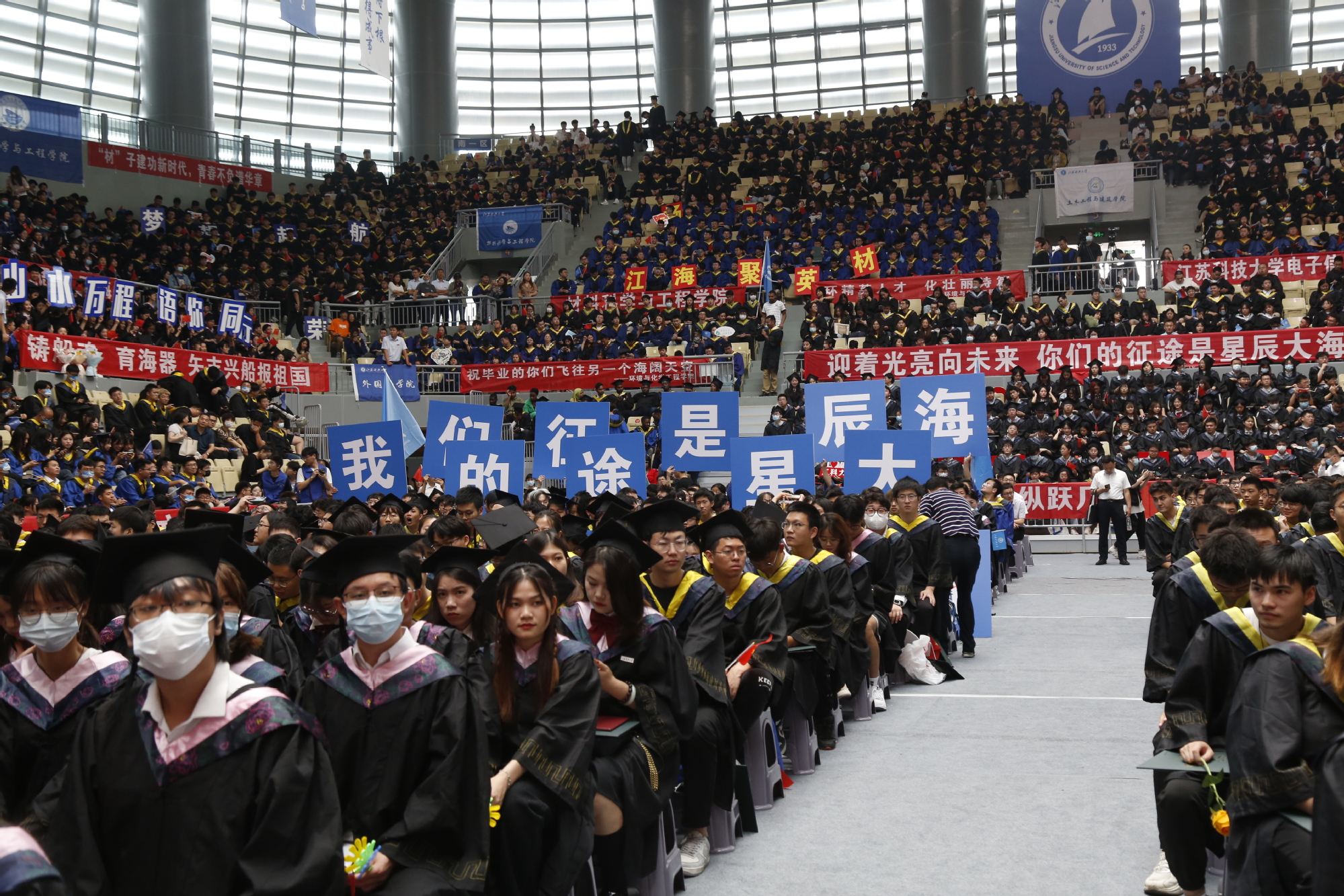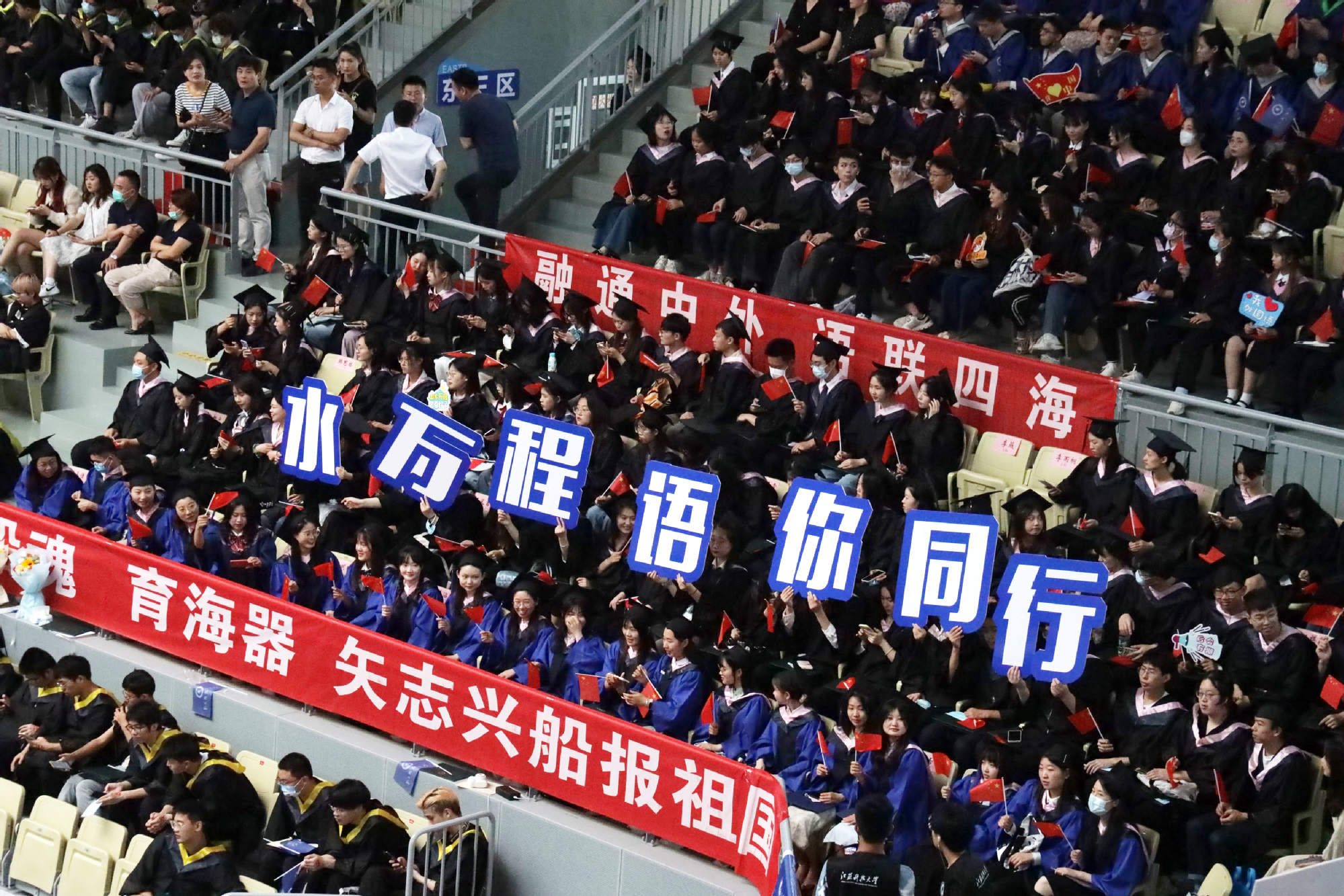 周南平勉励全体毕业生,要让“情怀”有高度,争做伟大时代的践行者;要让“行动”有速度,争做逐梦路上的先行者;要让“坚守”有长度,争做“船魂”精神的传承者。“所有的奋斗都将带你驶向崭新而宽阔的航程,所有的坚守都将带你迎着光亮向未来”,周南平希望,毕业生无论走到哪里,都把“江海襟怀、同舟共济、扬帆致远”的“船魂”精神打包带上,努力跑出当代江科大人的最好成绩!
