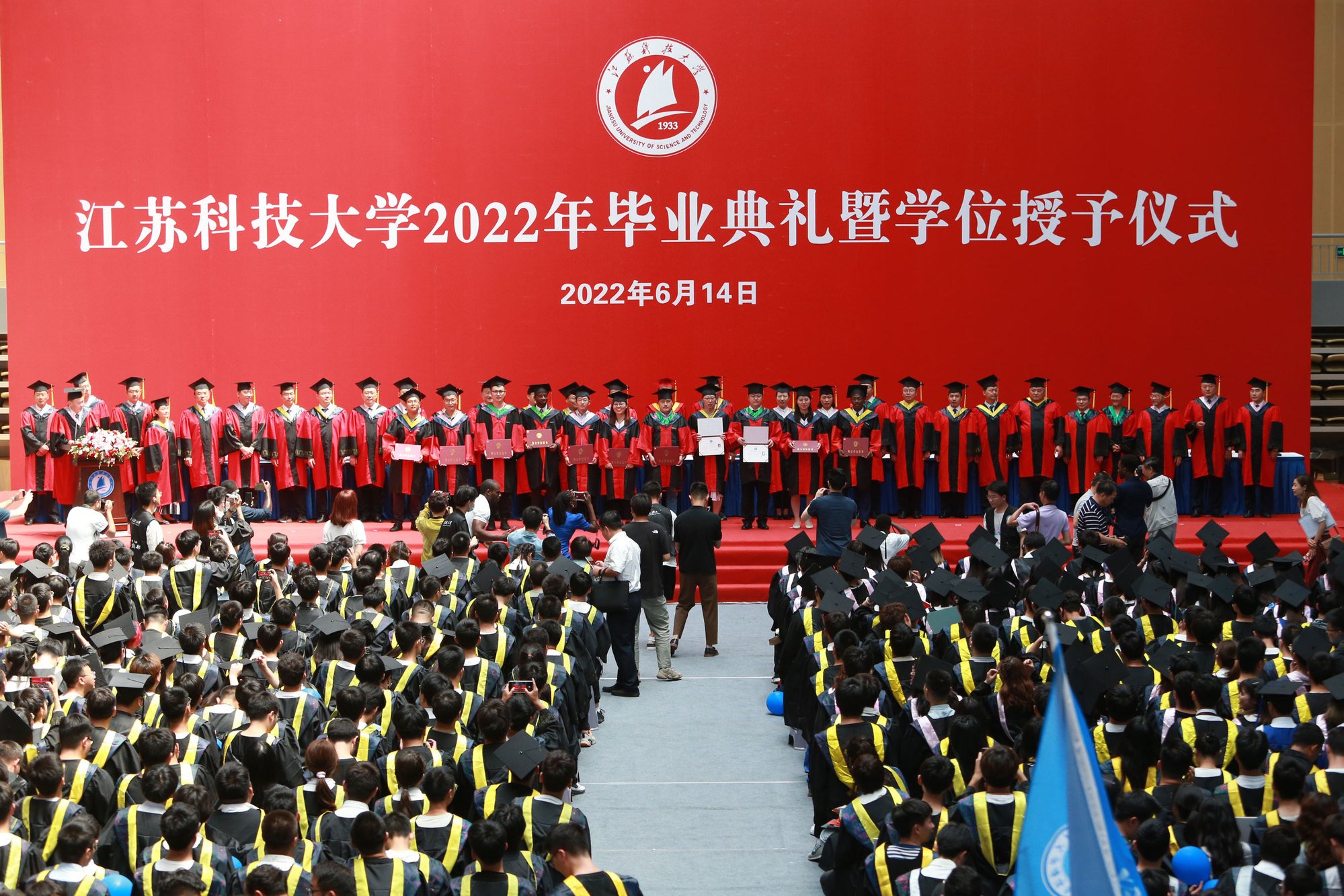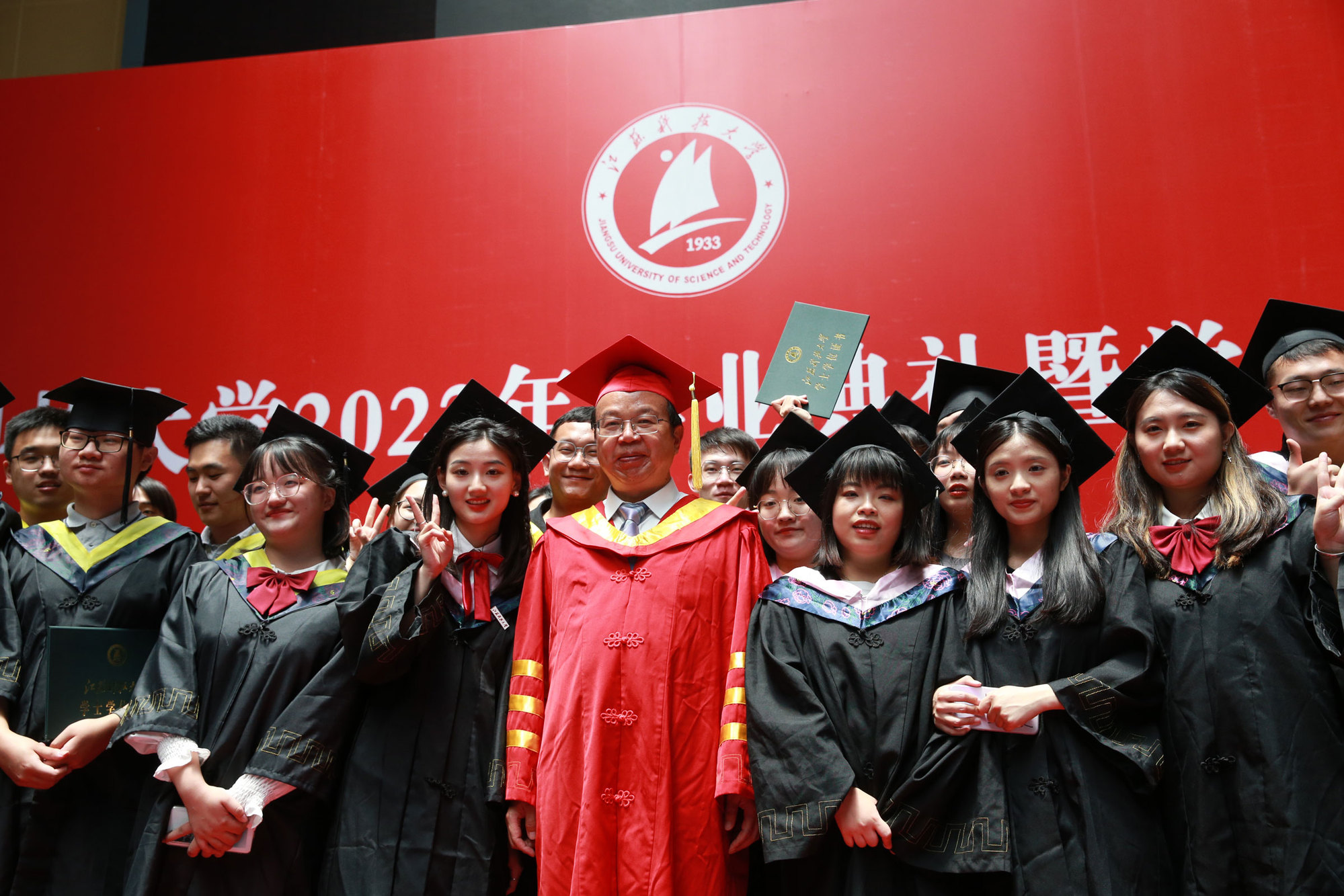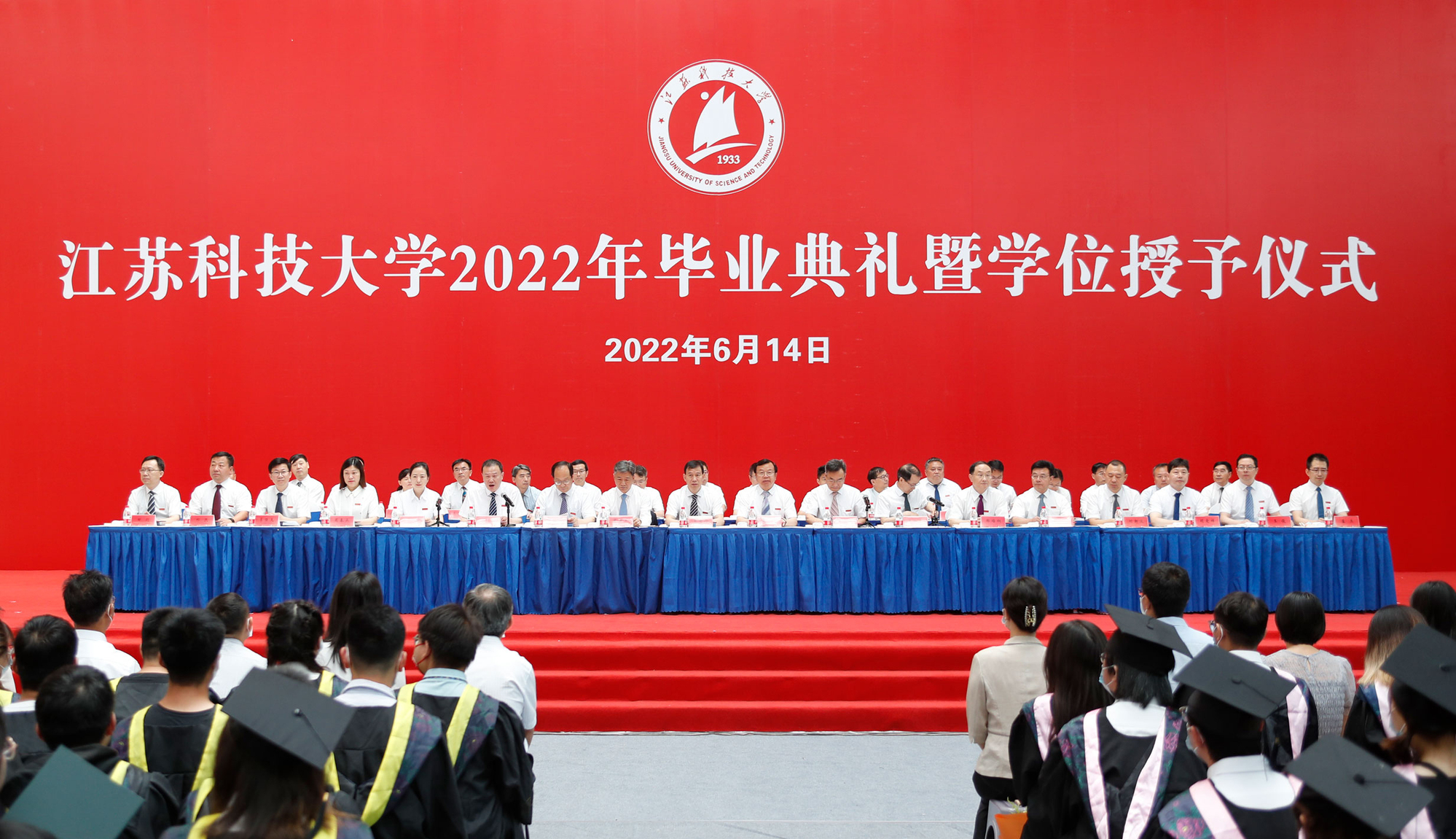 2022届毕业生当中,有1179名同学收到了研究生录取通知书,其中,境外高校留学62人、“双一流”高校录取611人,全员录取的考研学霸寝室有20个;186名同学成为学校新成立的海洋学院的首批毕业生;有22人报名参军立志保家卫国;有2885名同学作出了就业选择,其中到船舶行业单位工作的有281人,践行兴船报国梦想。“你们燃烧了青春的卡路里,也拼出了青春硬实力”,周南平细数闪亮的“江科大女孩”和“江科大男孩”在江科大奋斗的青春故事,为用专业技能服务广大蚕农的朱大林同学骄傲,为被中铁集团孟加拉分公司录取孟加拉国留学生马林同学叫好,向460余名化身“大白”“小蓝”“红马甲”的同学表达谢意……