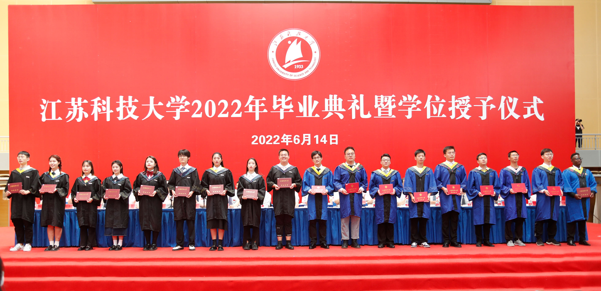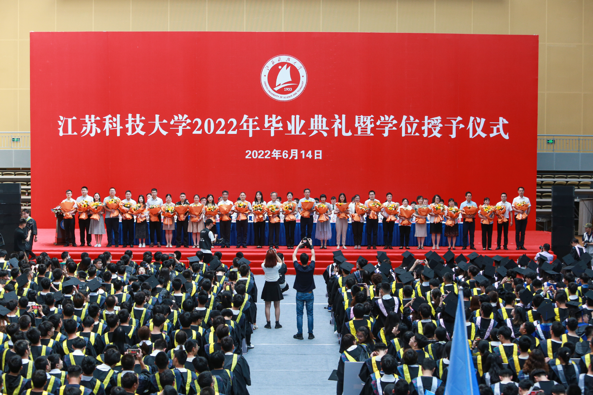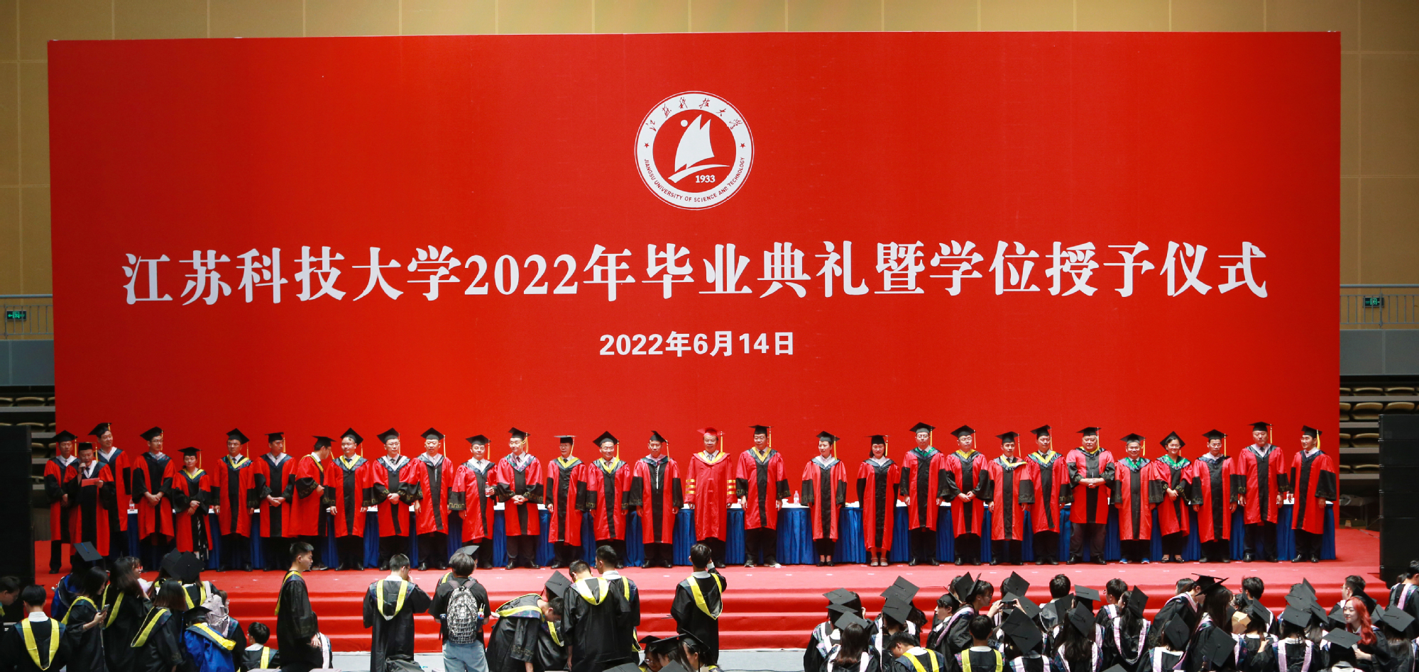 2022届毕业生当中,有1179名同学收到了研究生录取通知书,其中,境外高校留学62人、“双一流”高校录取611人,全员录取的考研学霸寝室有20个;186名同学成为学校新成立的海洋学院的首批毕业生;有22人报名参军立志保家卫国;有2885名同学作出了就业选择,其中到船舶行业单位工作的有281人,践行兴船报国梦想。“你们燃烧了青春的卡路里,也拼出了青春硬实力”,周南平细数闪亮的“江科大女孩”和“江科大男孩”在江科大奋斗的青春故事,为用专业技能服务广大蚕农的朱大林同学骄傲,为被中铁集团孟加拉分公司录取孟加拉国留学生马林同学叫好,向460余名化身“大白”“小蓝”“红马甲”的同学表达谢意……