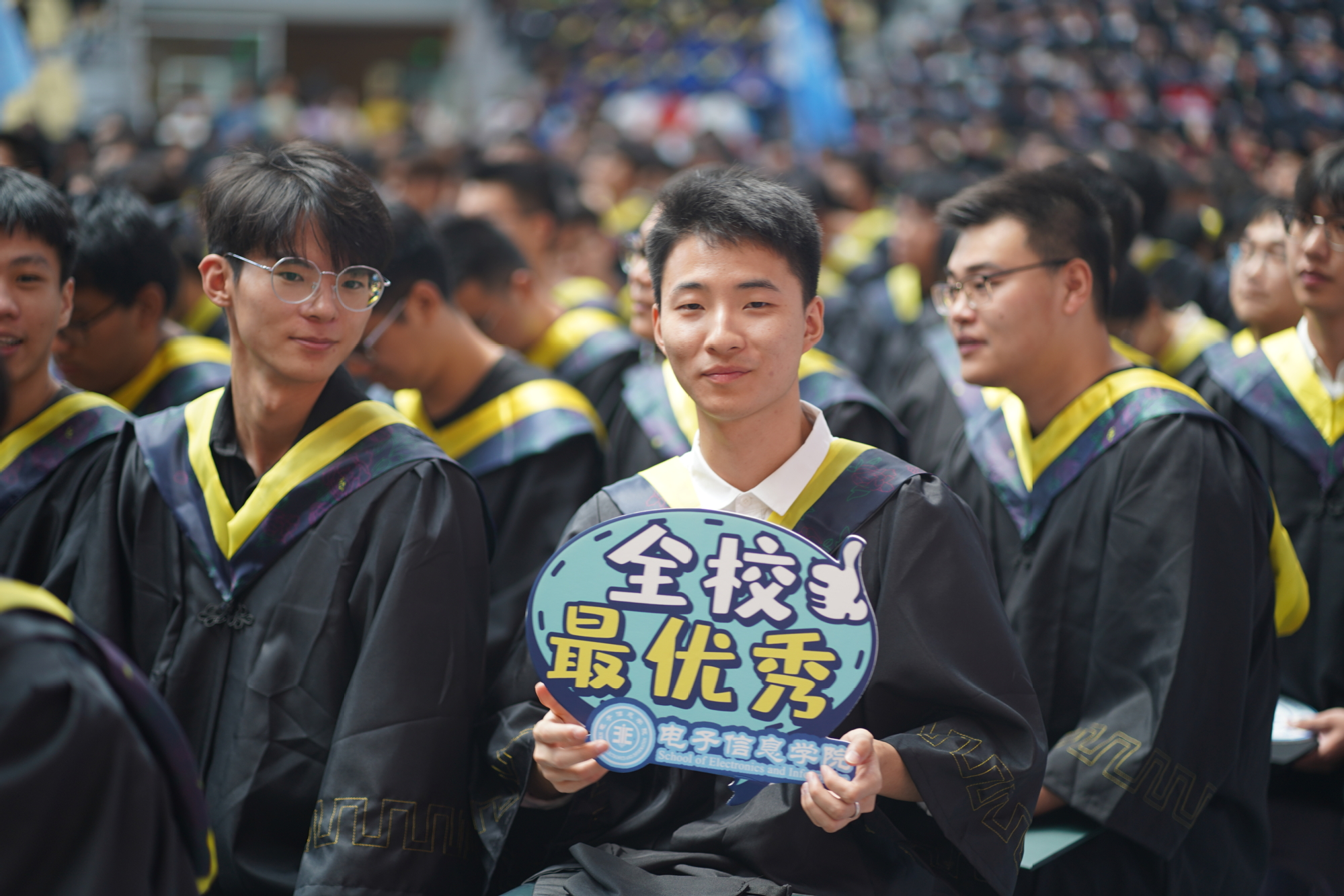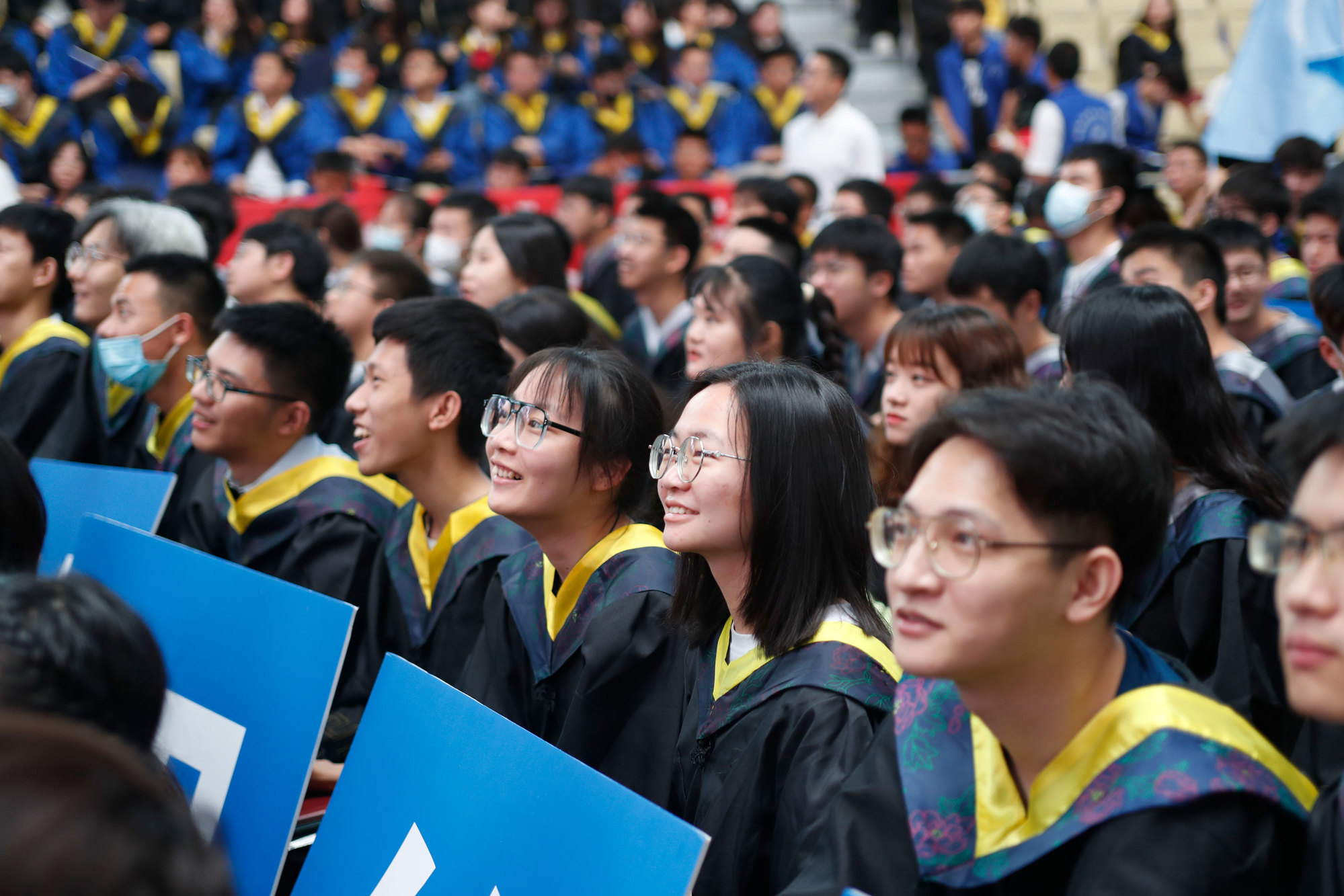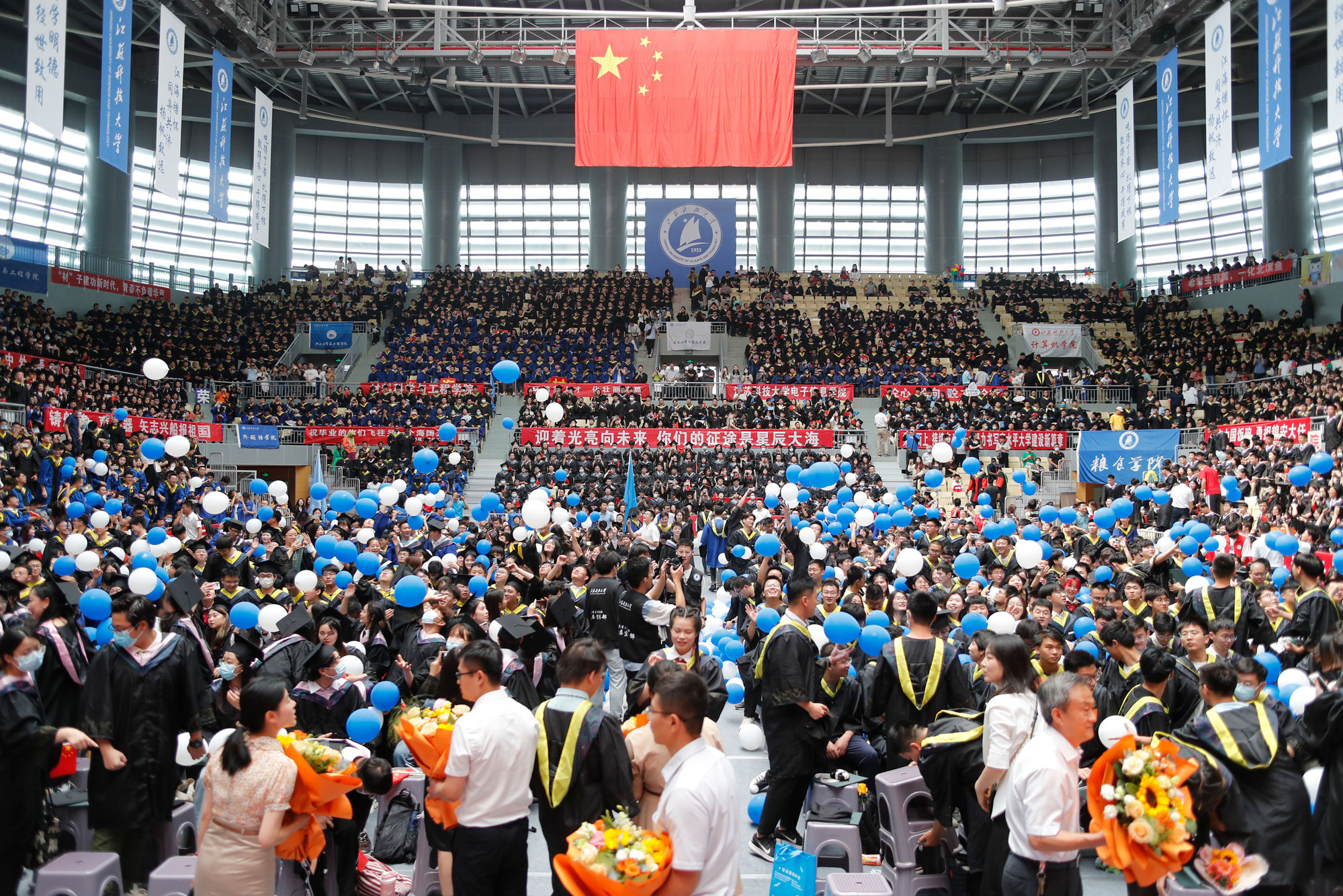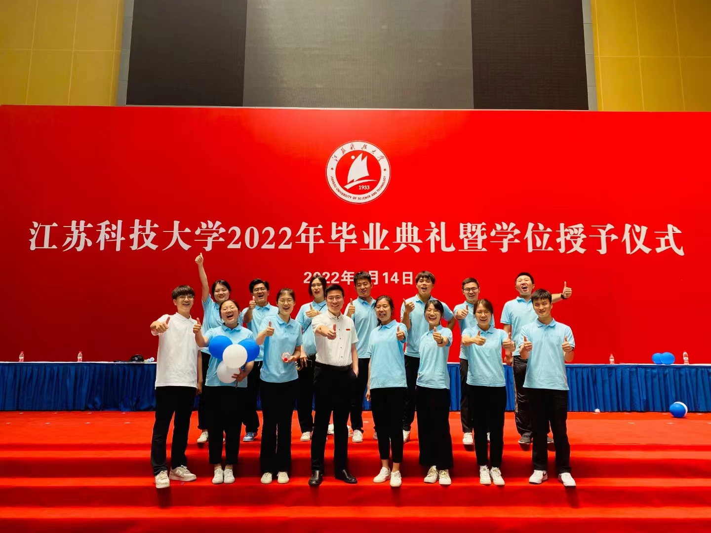 在球盟会qmh网站校歌声中,数千只蓝白相间的彩色气球从高空缓缓散落,仿佛跃腾的海浪,将现场氛围感拉满。伴着一路欢歌,庄重的学位授予仪式开始,毕业生依次上台领取学位证书,学位委员会全体导师为他们一一拨穗,圆满完成学位授予仪式。