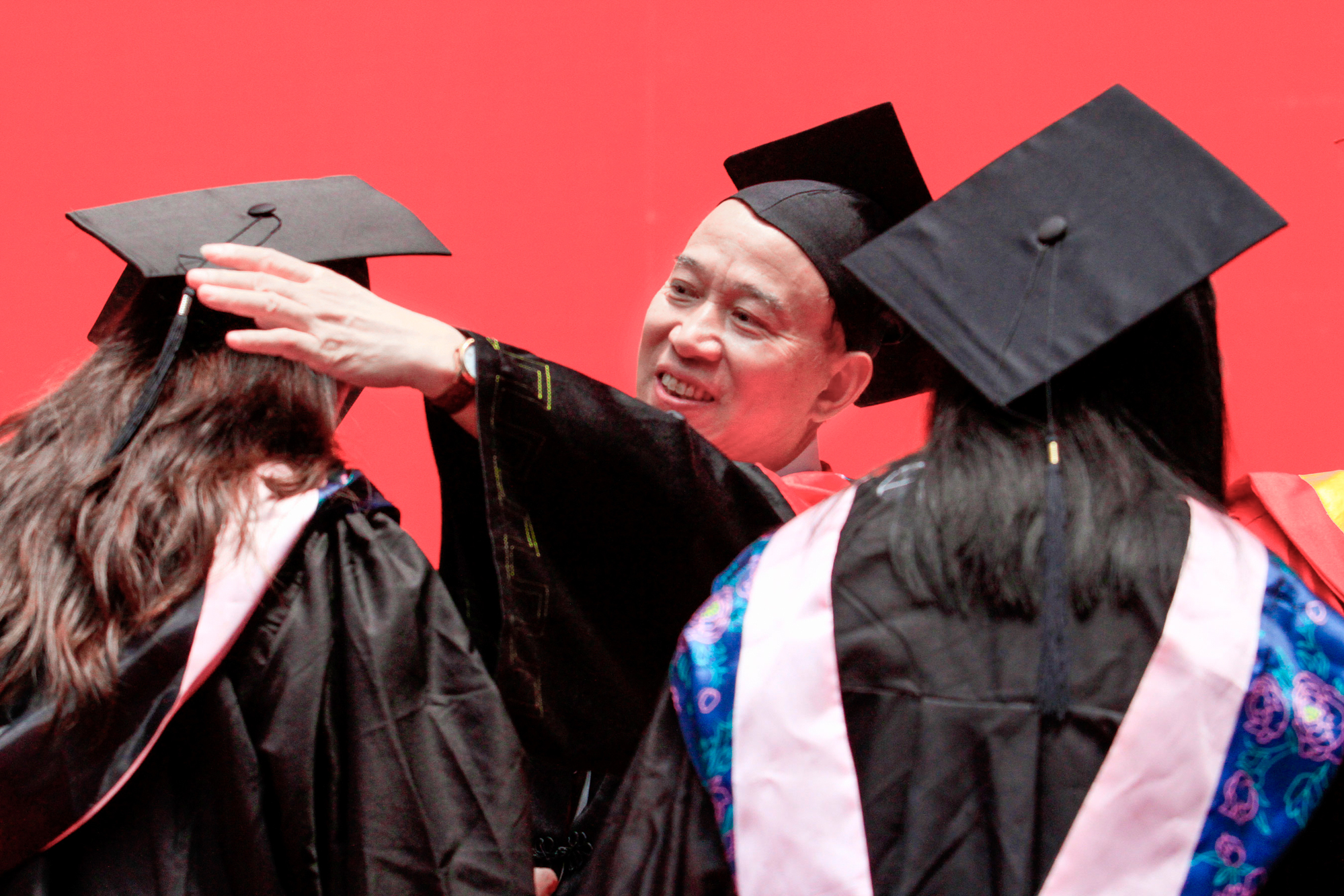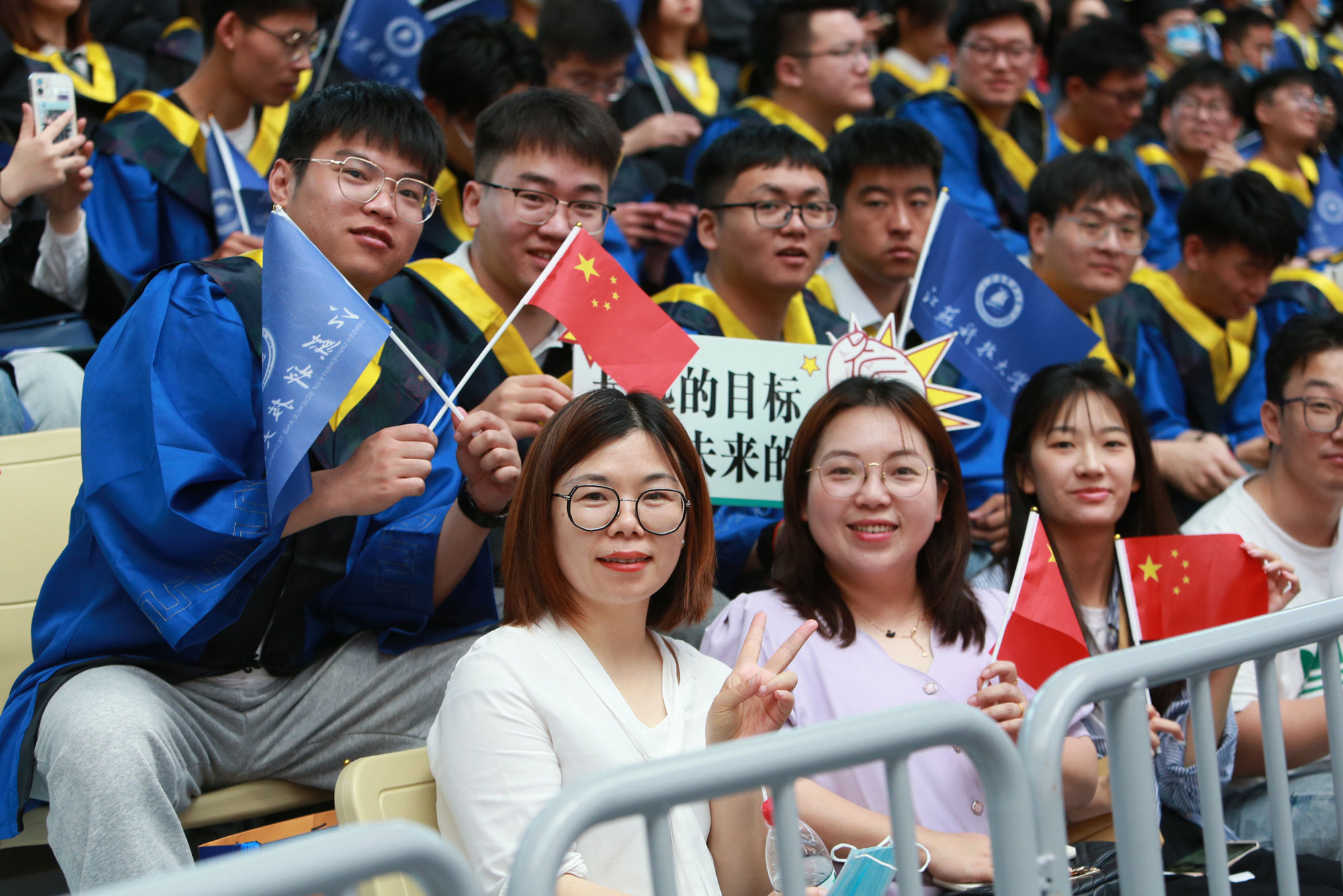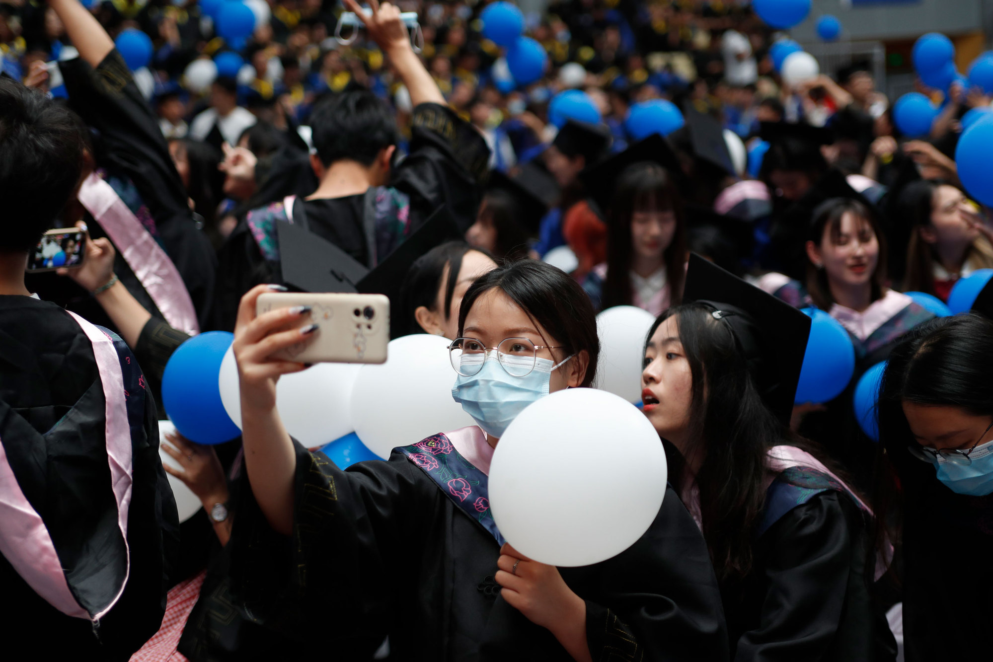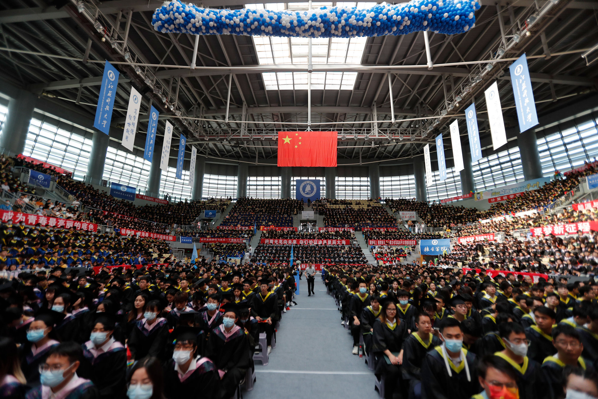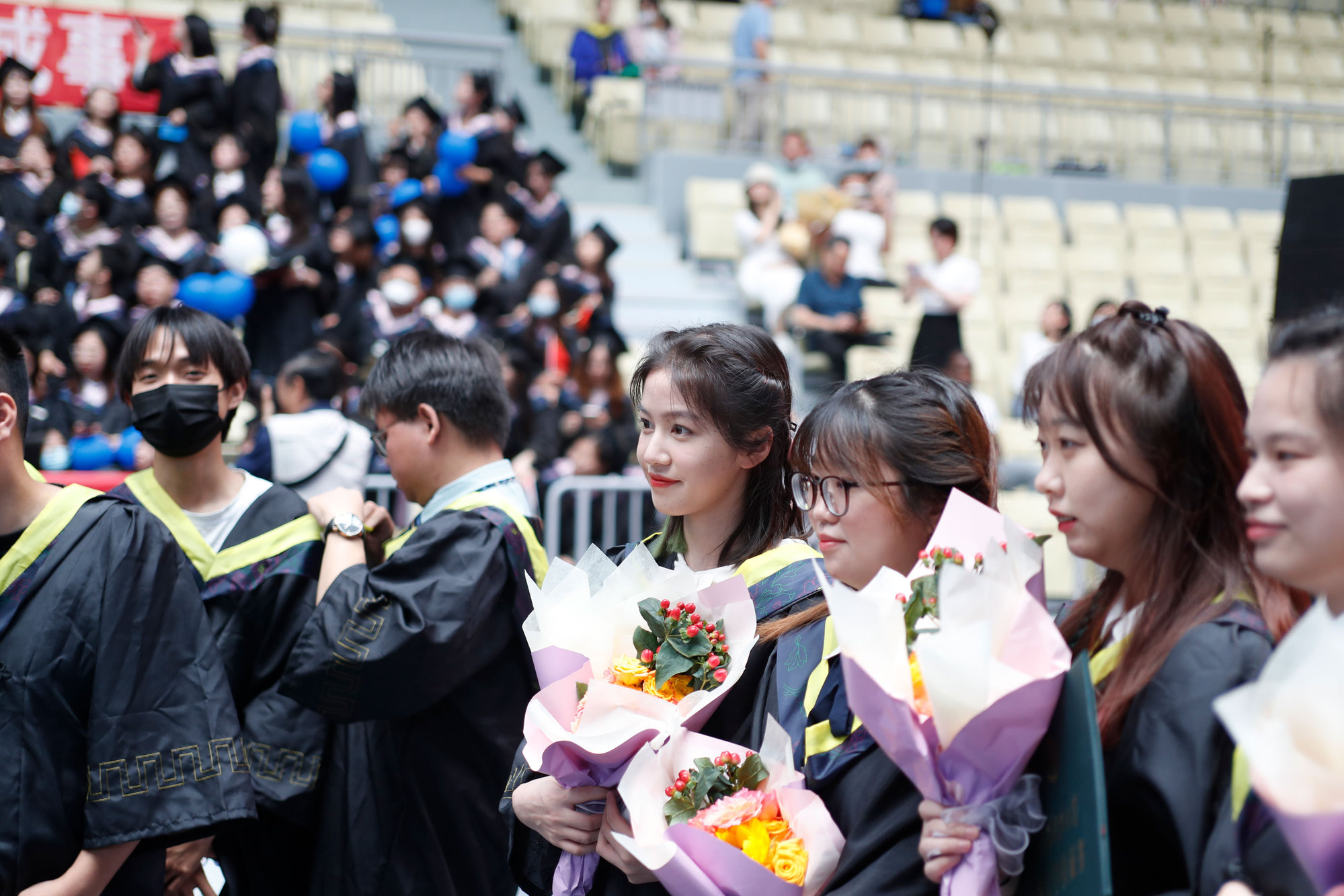 在球盟会qmh网站校歌声中,数千只蓝白相间的彩色气球从高空缓缓散落,仿佛跃腾的海浪,将现场氛围感拉满。伴着一路欢歌,庄重的学位授予仪式开始,毕业生依次上台领取学位证书,学位委员会全体导师为他们一一拨穗,圆满完成学位授予仪式。