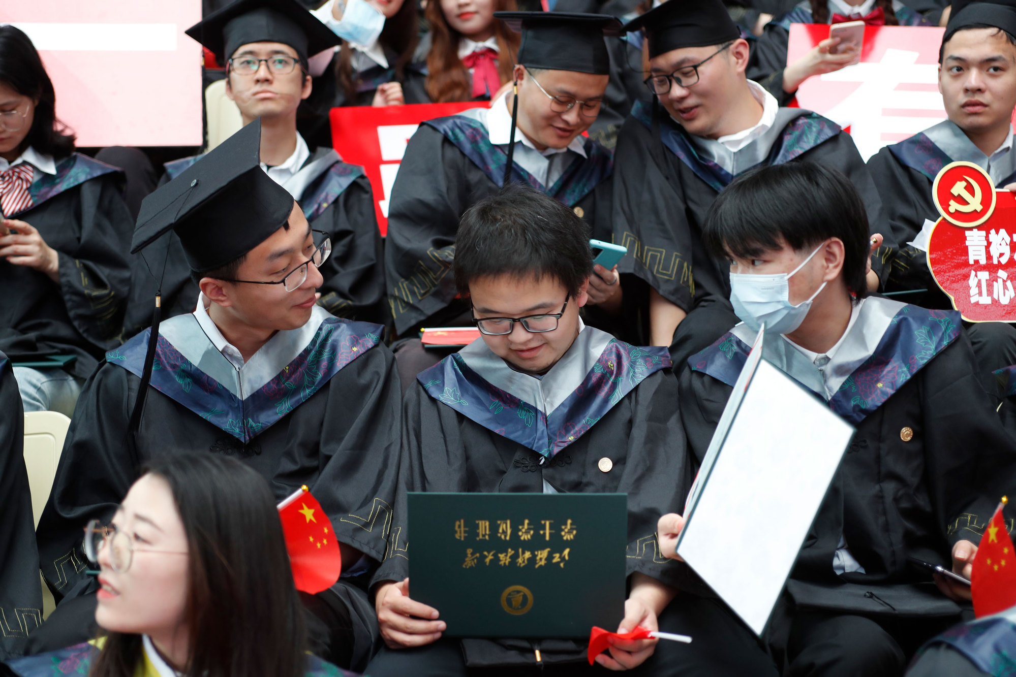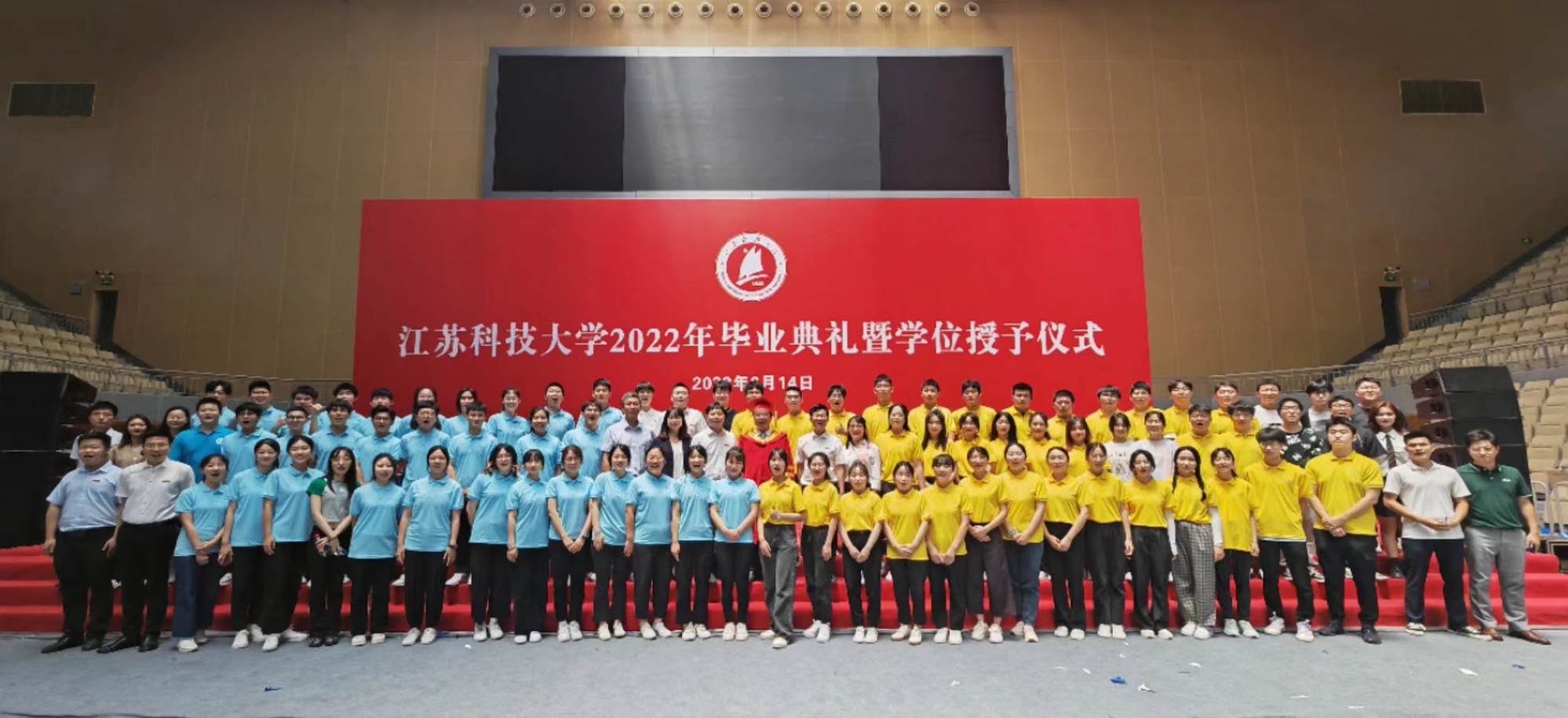 毕业典礼现场播放暖场片《山海总相逢》,将同学们的青春芳华闪回定格,感人又暖心;大学生艺术团的毕业生歌曲串烧和节目《星辰大海》引“燃”全场;典礼当天是吏泽群等7位毕业生的生日,学校为他们准备了生日蛋糕并送上生日祝福;每位毕业生都收到一份来自学校的专属“毕业礼”——一枚镌刻着学生姓名和江科大logo的印章,寓意同学们与学校永远紧密相连、心心相印。