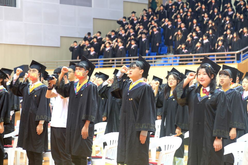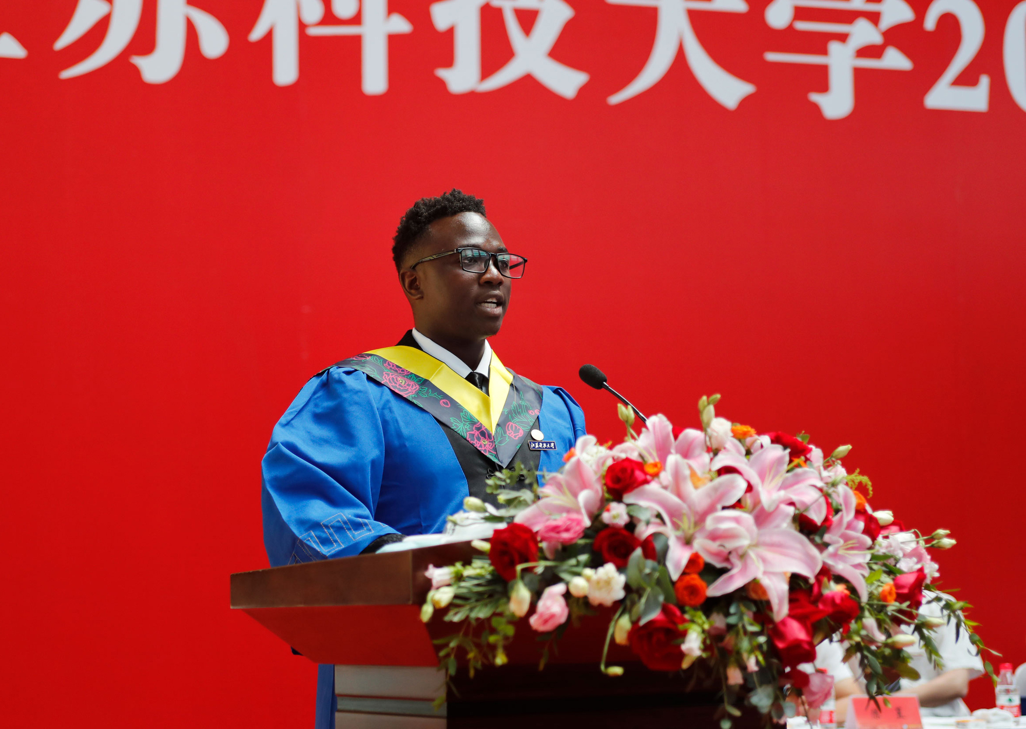 桃李感恩,心心相连。材料科学与工程学院叶飞同学代表2022届研究生毕业同学发言;来自津巴布韦的布莱特同学代表全体外国硕士留学生作毕业发言;生物技术学院庞慧琳同学作为本科生代表发言。他们与大家分享了在江科大的难忘点滴,表达了对母校的感恩和对未来的美好希冀:“长山脚下花满园,一枝一叶总关情;依依难舍别母校,筑梦青春满天星。”