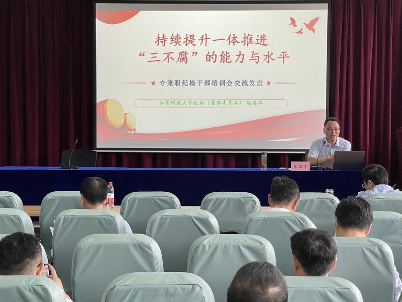 7月6日上午,校纪委副书记、党委巡察工作办公室主任陶海洋围绕《持续提升一体推进“三不腐”的能力与水平》主题,就新时代一体推进“三不腐”机制的重大意义、新时代 “三不腐”机制的形成与成效、新时代对基层组织基本要求与基本任务的最新规定、高校一体推进“三不腐”的形势与现实差距等方面进行了系统阐述,并就如何提升高校一体推进“三不腐”的能力与水平,分享了建设思路和路径参考。