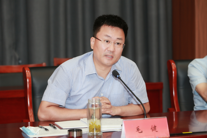 7月13日,镇江市丹徒区委书记毛健一行来校调研,开展校地合作座谈,丹徒区委副书记、政法委书记包荣军,区委常委、宣传部长、统战部长邵建海,区委办、区科技局、市自然资源和规划局丹徒分局、区人才办、丹徒高校园区指挥部相关负责人参加调研。学校党委书记葛世伦,党委常委、副校长汤建,党委常委、宣传部长周春燕出席座谈会。汤建主持座谈。