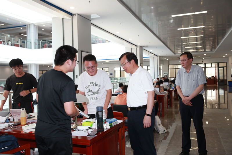 在图书馆,在馆人数近1000人,有研究生,也有即将进入大四的本科生,大家埋头苦学,补不足,学新知。“复习有什么困难?”“在图书馆学习有什么其它需求?”……周南平校长轻轻走近同学,问长问短,他表示,同学们假期留校复习考研或者深入学习,有了目标,要树立信心并付出努力,要坚持不懈,要保持平常心,更要有恒心,当然也要劳逸结合,要加强运动,保持健康的体魄。目前,学校条件有限,不能完全满足同学们的需求,但是也要力所能及地做好相关服务。学校的心与同学们的心在一起,希望同学们珍惜在校的奋斗时光,希望考研的同学努力不负期望,考上心仪的学校,也希望有更多学生报考球盟会qmh网站,希望在研究生的开学典礼上能再次见到大家。有同学现场提意见建议,相关职能部门现场办公,力求最快解决同学们的诉求。