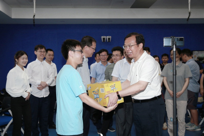 在文理大楼数学建模大赛集训营102室,周南平校长感受到了师生高涨的参赛热情,他对集训师生的不畏酷暑的备赛精神、团结协作的团队精神、为校争光的集体主义精神大加赞赏,对指导老师暑期“舍小家为大家”的无私奉献精神表示充分肯定,希望师生继续发扬这种精神,取得更好成绩。