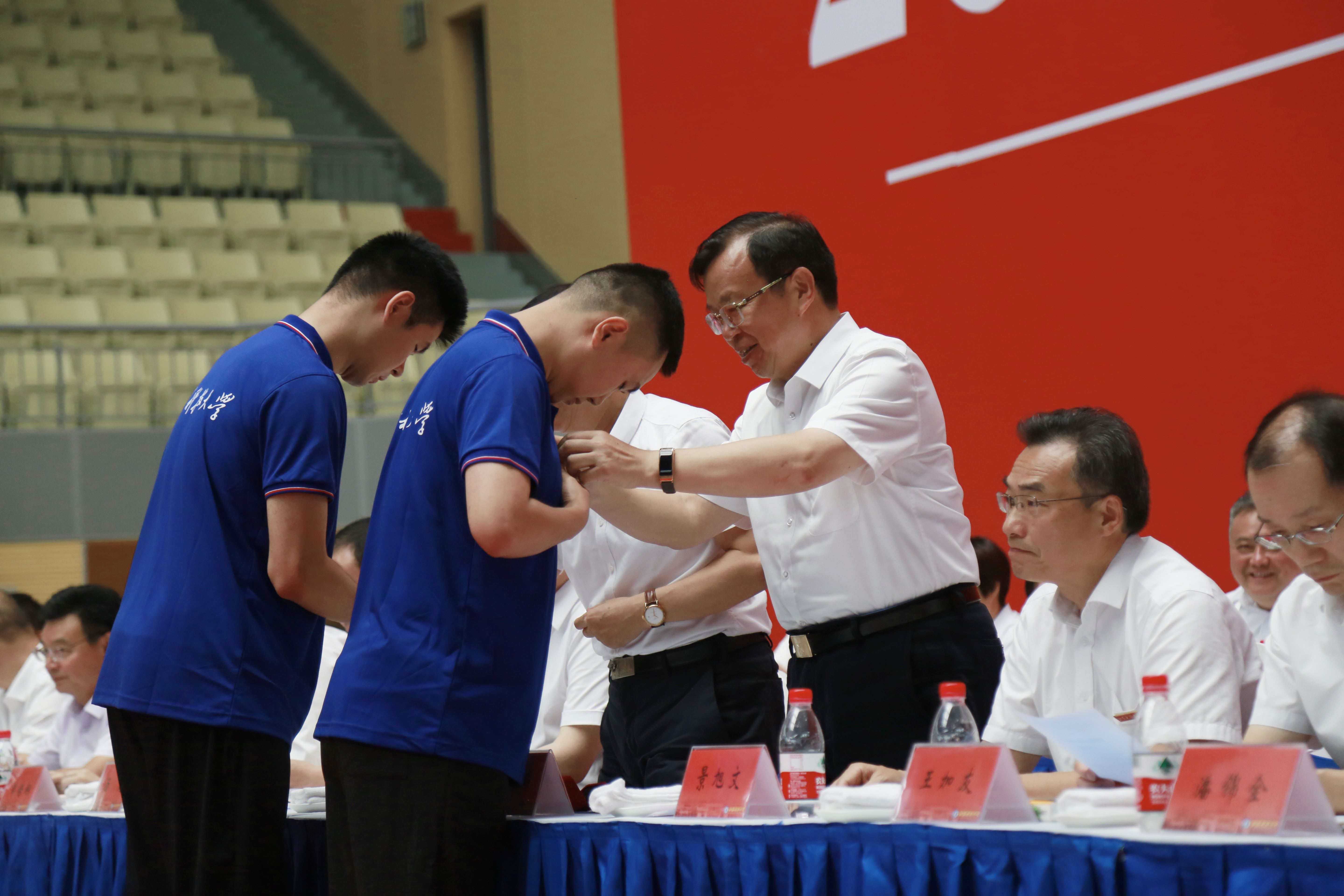 葛世伦书记、周南平校长为新生代表颁授校徽。自此2022级研究生将在清秀的云书山下、宁静的海韵湖畔开启“高段位”的科研探索旅程,在学校特色文化浸润中成为具有江科大特质的、能够堪当民族复兴重任的时代新人。
