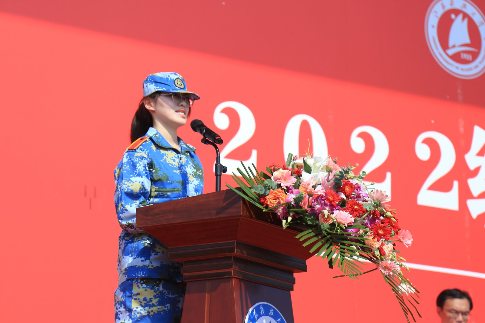 典礼在雄壮的国歌声中拉开帷幕。周南平寄语新同学《逐梦青春赛道,奋力奔跑向前》。他表示,长期以来,学校坚持内涵发展、特色发展之路,形成了“船舶、海洋、蚕桑”三大特色。学校是全国相关高校中船舶工业相关学科专业设置最全、行业内校友最多、具有船舶特色整体性和应用性优势的高校之一,享有“中国造船工程师摇篮”美誉,为国家海洋强国战略作出了卓越贡献。学校将紧密跟踪国家和行业战略需求,不断奋发有为,努力取得新成绩、新突破。