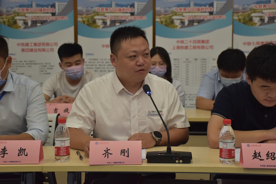 中铁十一局集团公司齐刚、中交三航局江苏公司丁绍华分别进行了交流发言,分别表示:“土建学院高度重视学生创新实践能力的培养,积极推进素质教育,为企业培养和输送了许多优秀的技术型人才。希望今后双方以校企联盟为平台,不断拓宽合作领域,创新合作模式,打造校企协同发展共同体,努力创建校企合作的典范,使校企双方的合作迈上新的台阶,使校企合作结出丰硕成果”。